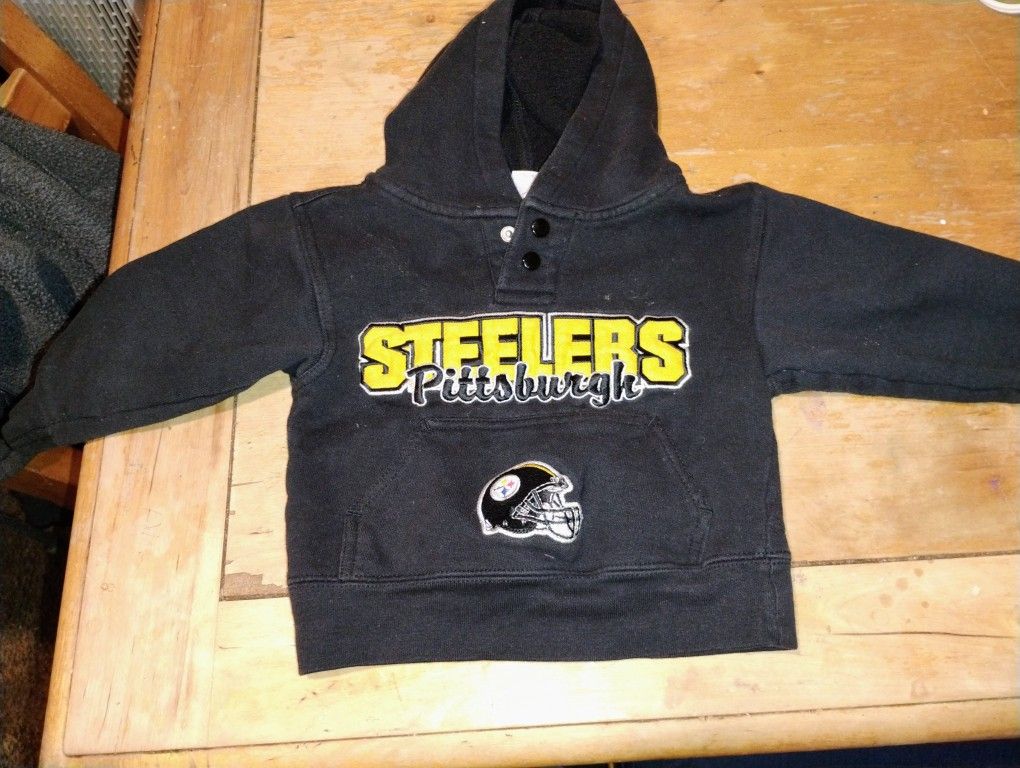 Toddler Boy Clothing & Shoes Bundle. Includes A 2T Pittsburgh Steelers Hoodie, Nike Low-Top Sneakers (Size 6), And Crocs - Style Sandals (Size 5).