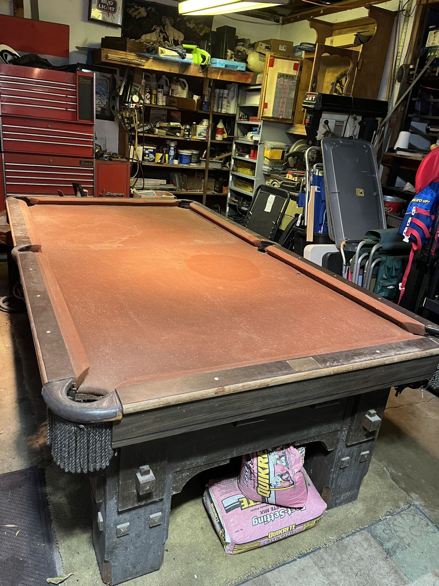 Official custom original billiards pool table. Still completely functioning and usable also can turn into a ping-pong table. Would be good for a restoration project. Definitely needs a good cleaning. includes everything needed for setting up the ping-pong table as well as paddles and balls. also comes with pool sticks and all the balls for pool as well as a mountable stick holder for the billiard sticks. The pool table is solid one piece. You must be able to transport. $500. OBO must go as soon as possible. Price is negotiable.