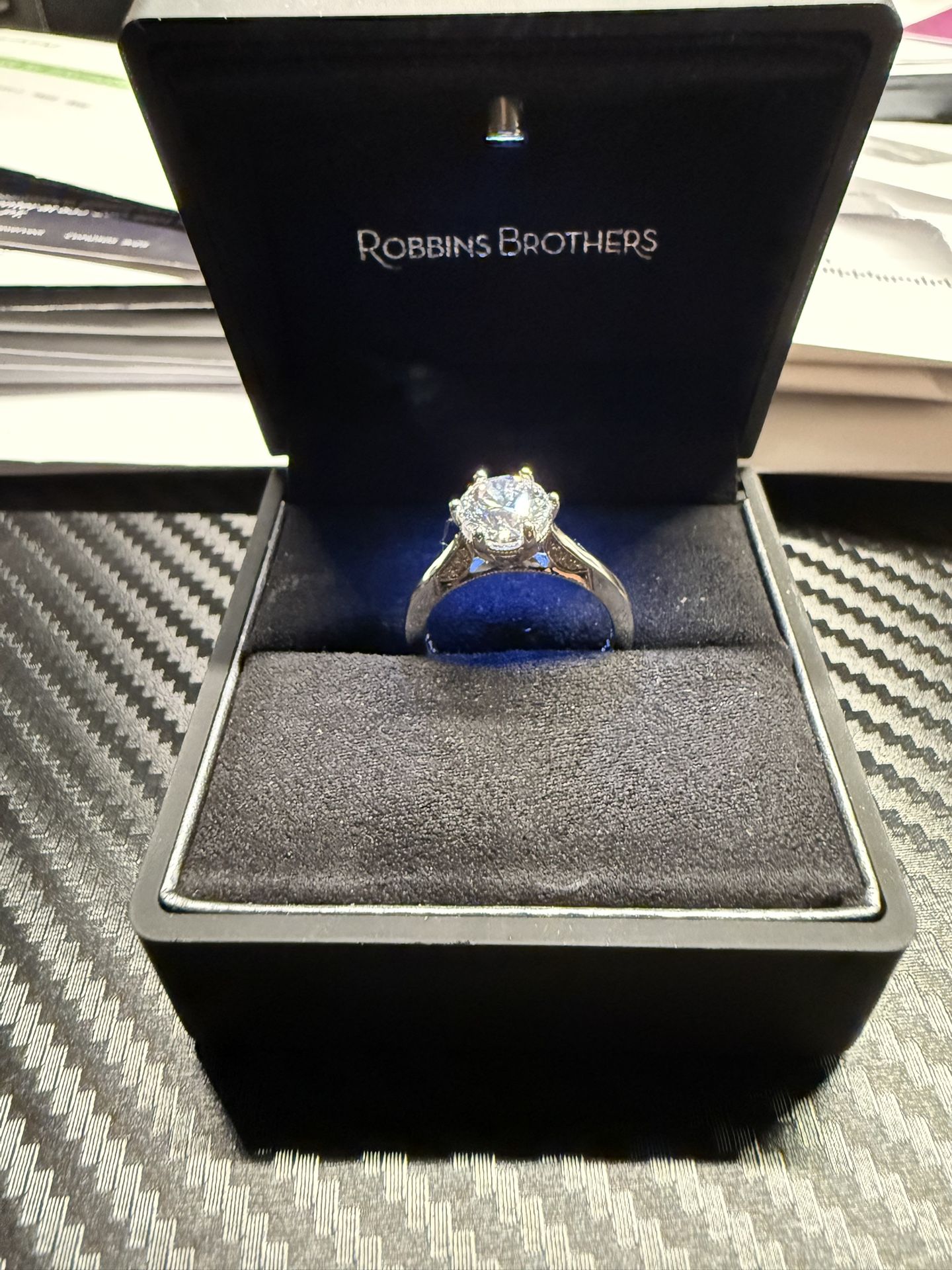 1.5 ct Lab grown Tacori engagement ring. S1l F. Light scratches on band but can be buffed.