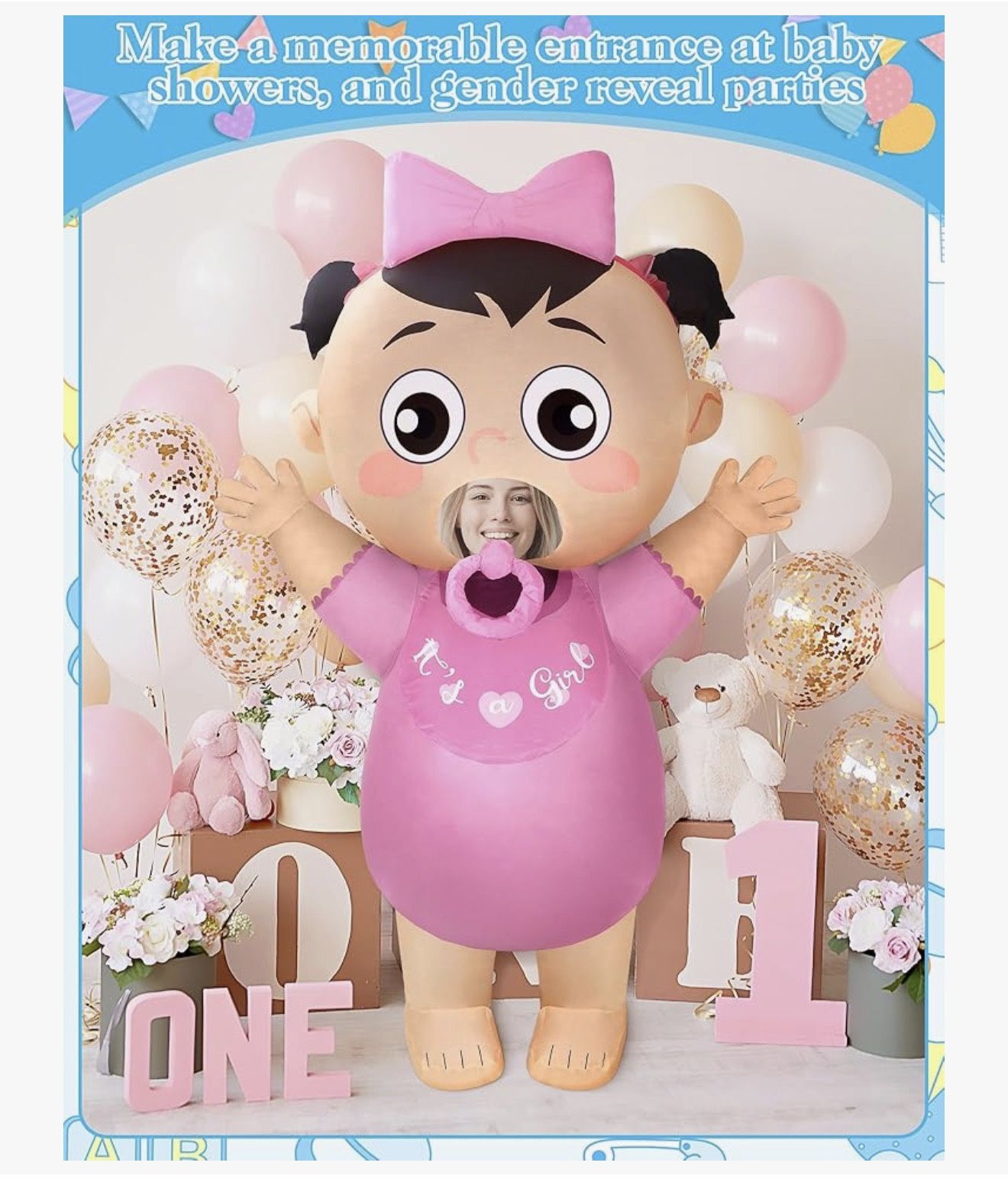 “It’s a Girl” Inflatable Blow up Costume for Adult 96'' Baby Costume for Baby Shower Cosplay Gender Reveal Party