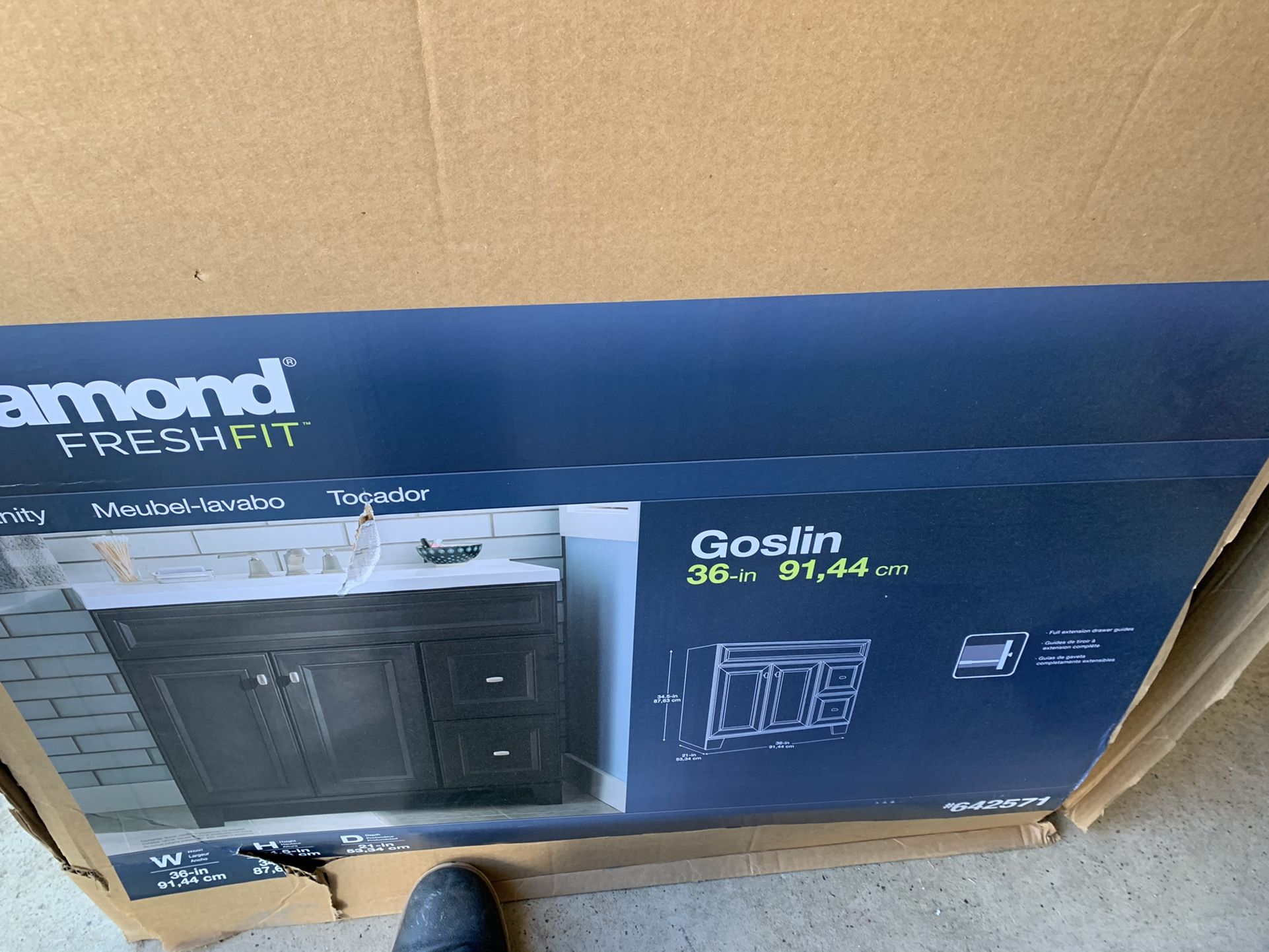 Brand new Diamond NOW Goslin 36-in Storm Bathroom Vanity Cabinet 36-in W x 21-in D bathroom vanity Model #39A VSDB36 Retails $339