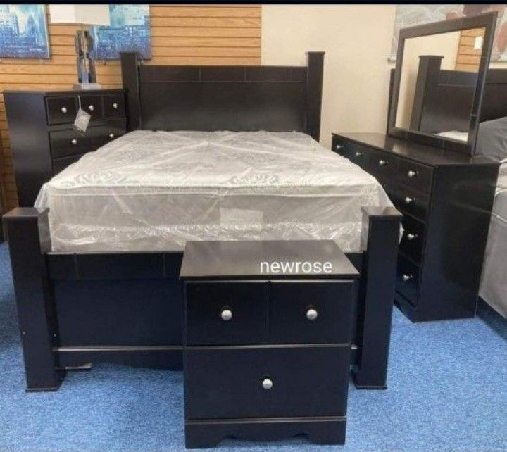 Black Bedroom Set 4-Piece (QB, Dresser Mirror Nightstand)