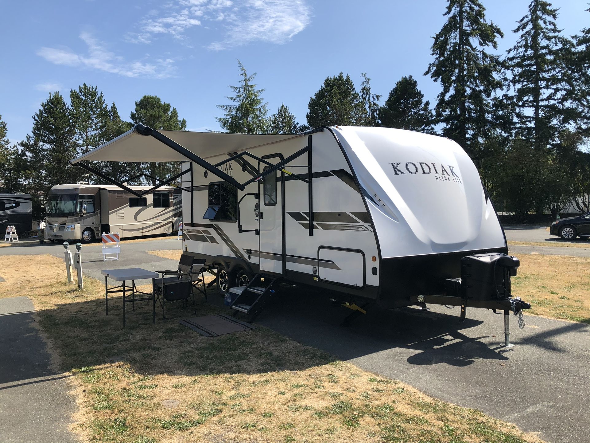 $15450.00. It’s ready for the road today! Length ~ 24.08 ft (289 in) Width 8 ft (96 in) Height ~10.25 ft (123 in) Dry Weight ~ 3,980 lbs Payload Capacity ~ 1,520 lbs Hitch Weight ~ 452 lbs Sleeping Capacity Up to 4 people Fresh Water ~ 52 gal Gray Water ~ 39 gal Black Water ~ 28 gal Water Heater ~6 gal, electric/propane A/C 13,500 BTU standard Exterior: Power awning, pass-through storage, aluminum/fiberglass construction • Condition: like new tires, no leaks, no pets, no smoking • Extras Included: Leveling blocks, sewer hose, water pressure regulator, owner’s manual, cross chocks, propane fire pit, folding chairs, miscellaneous pots, pans and utensils, out door carpets. Receiver and leveling bars included. Original owners, retired couple. Used 15 times locally. Title in hand, ready for camping and hunting.
