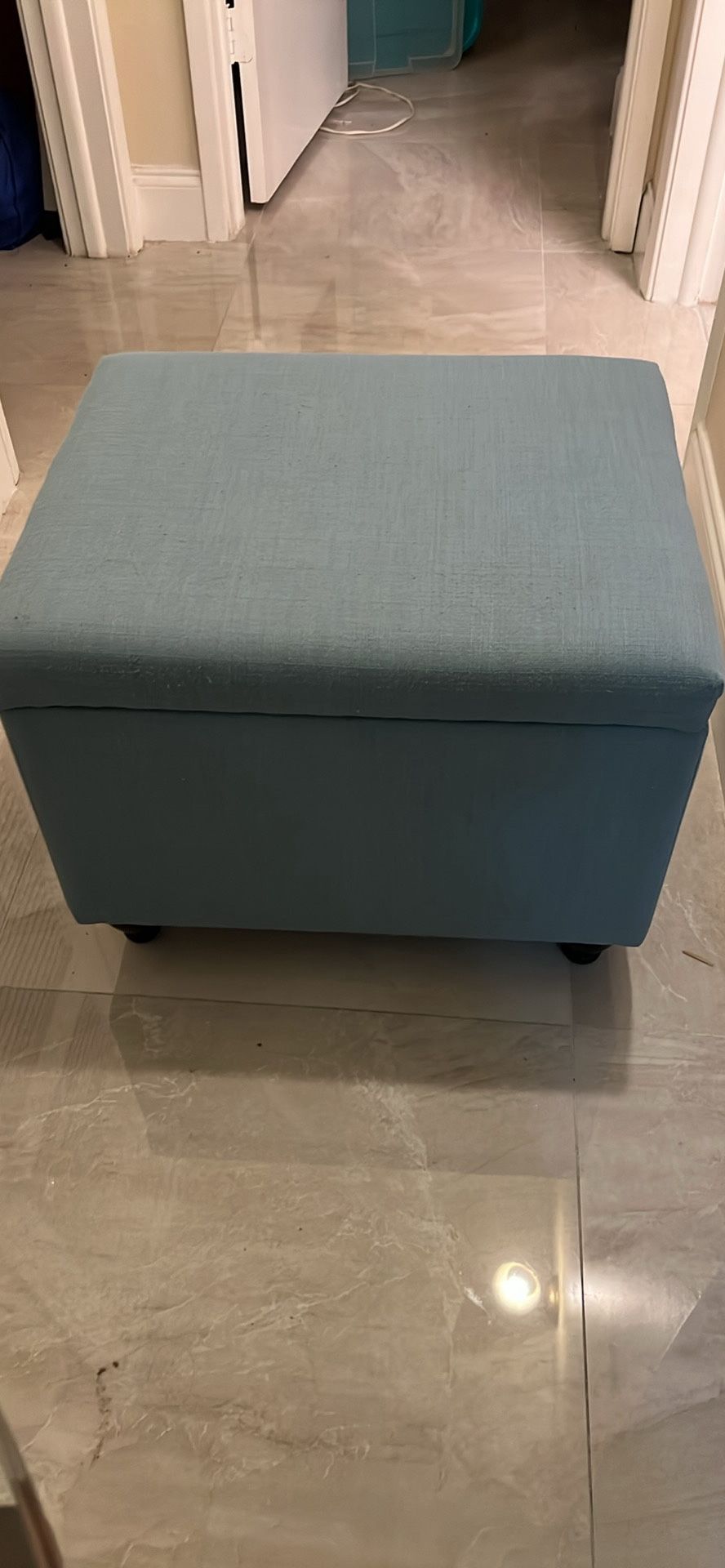 light blue upholstered storage ottoman