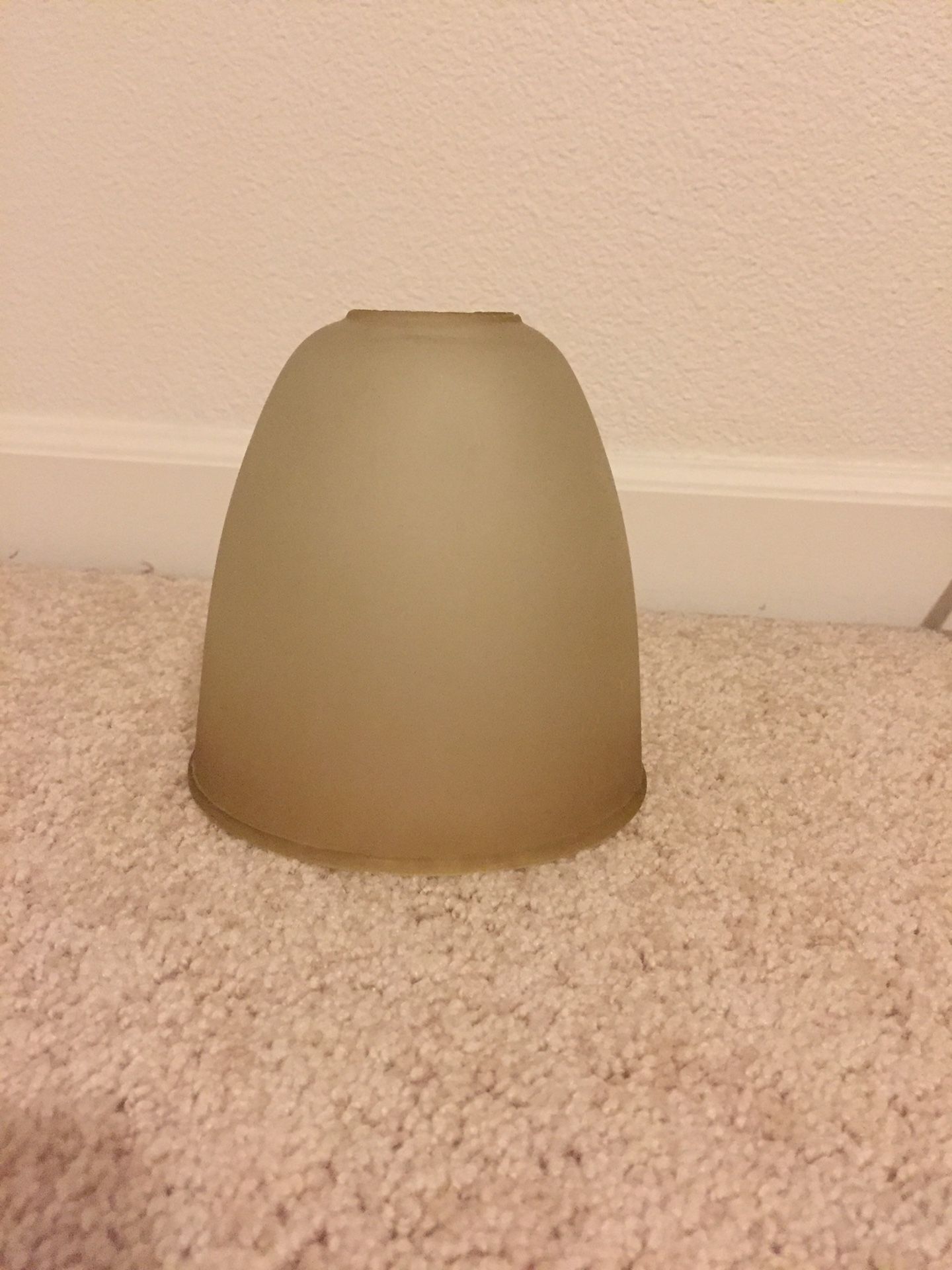Frosted glass shade with “tea stained” finish (glass fades from tannish brown to frosty white). Great for rustic decor. 5.5” tall.