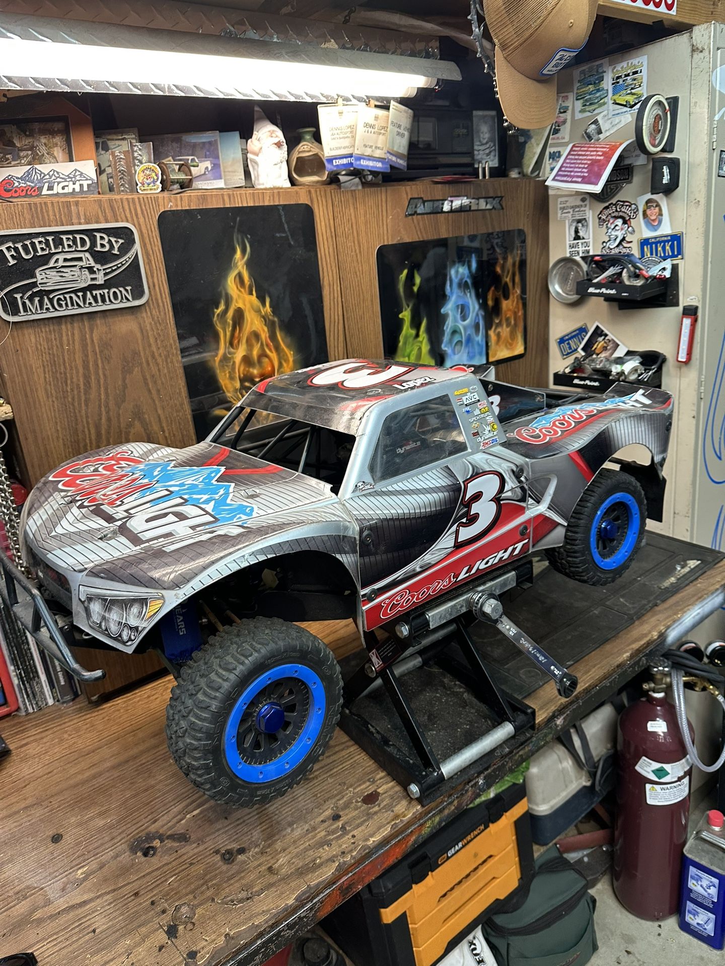 Losi 5t. 29cc two stroke motor , Literally 2-3 tanks ran through it ( broken in). Many upgrades, factory braces, skid plates pipe, aftermarket air filter, true disk braking. Heavy duty Coors light wrap. Truck is in like new condition. Was a build that turned into a shelf truck. Now taking space