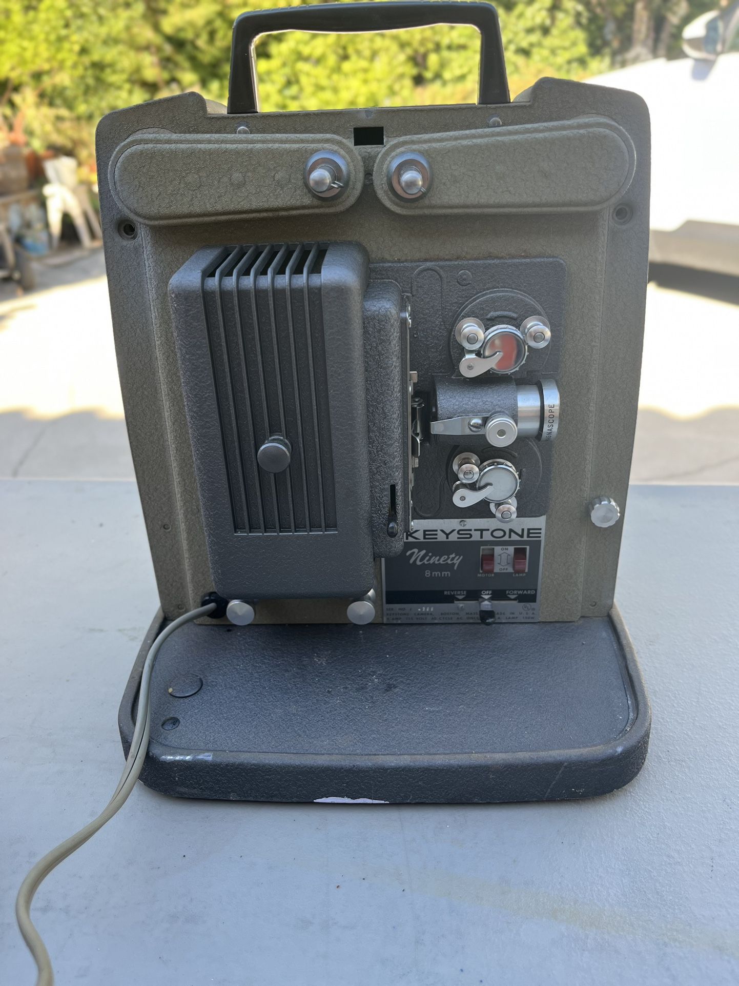 vintage Keystone Ninety 8mm movie projector. This model is a portable, two-tone film projector from the 1950s Tested motor only humming needs repair or use for parts