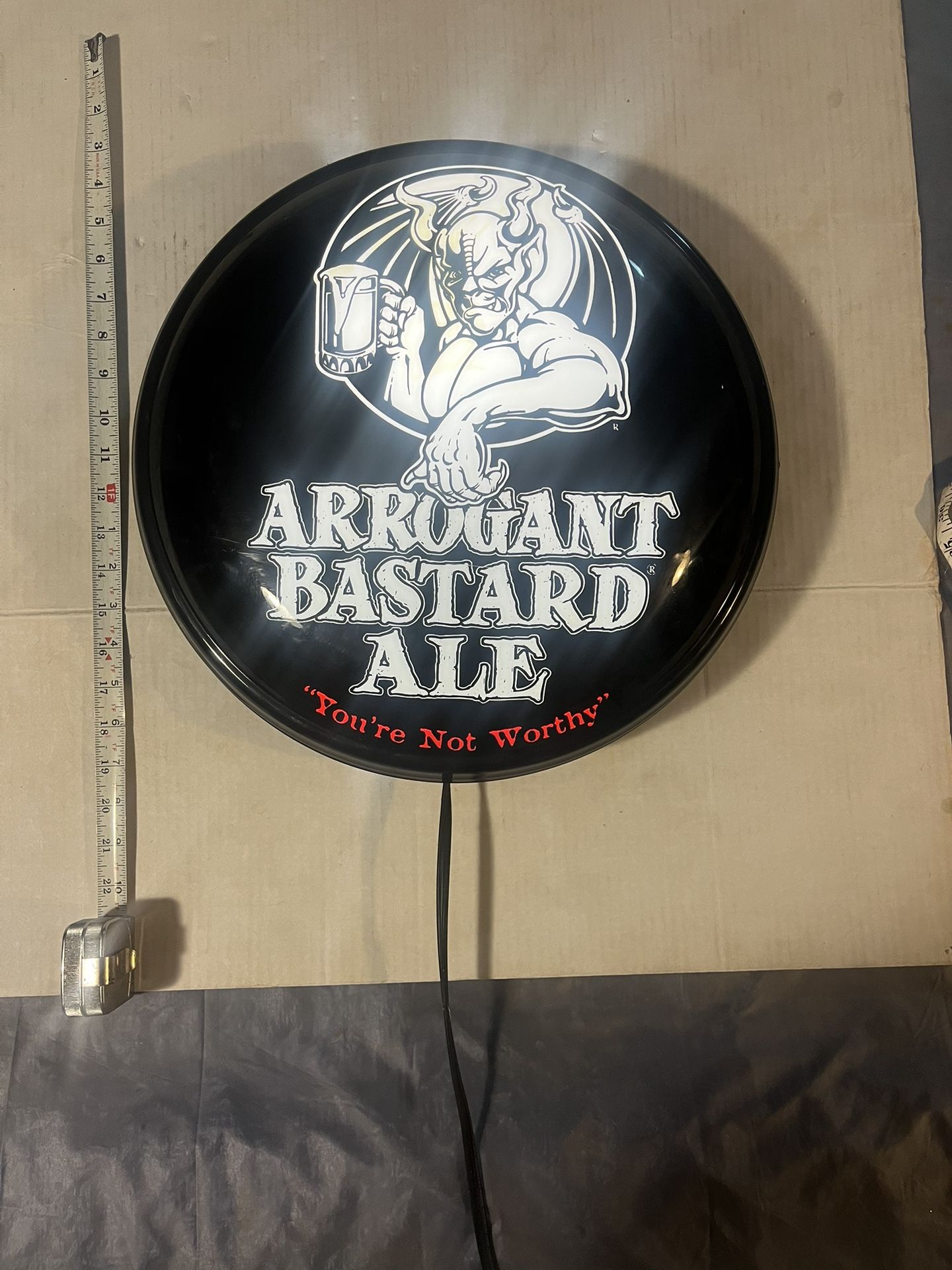 Rare Arrogant Bastard Ale Beer BAR SIGN Light Stone Brewery 17” Plastic Vtg