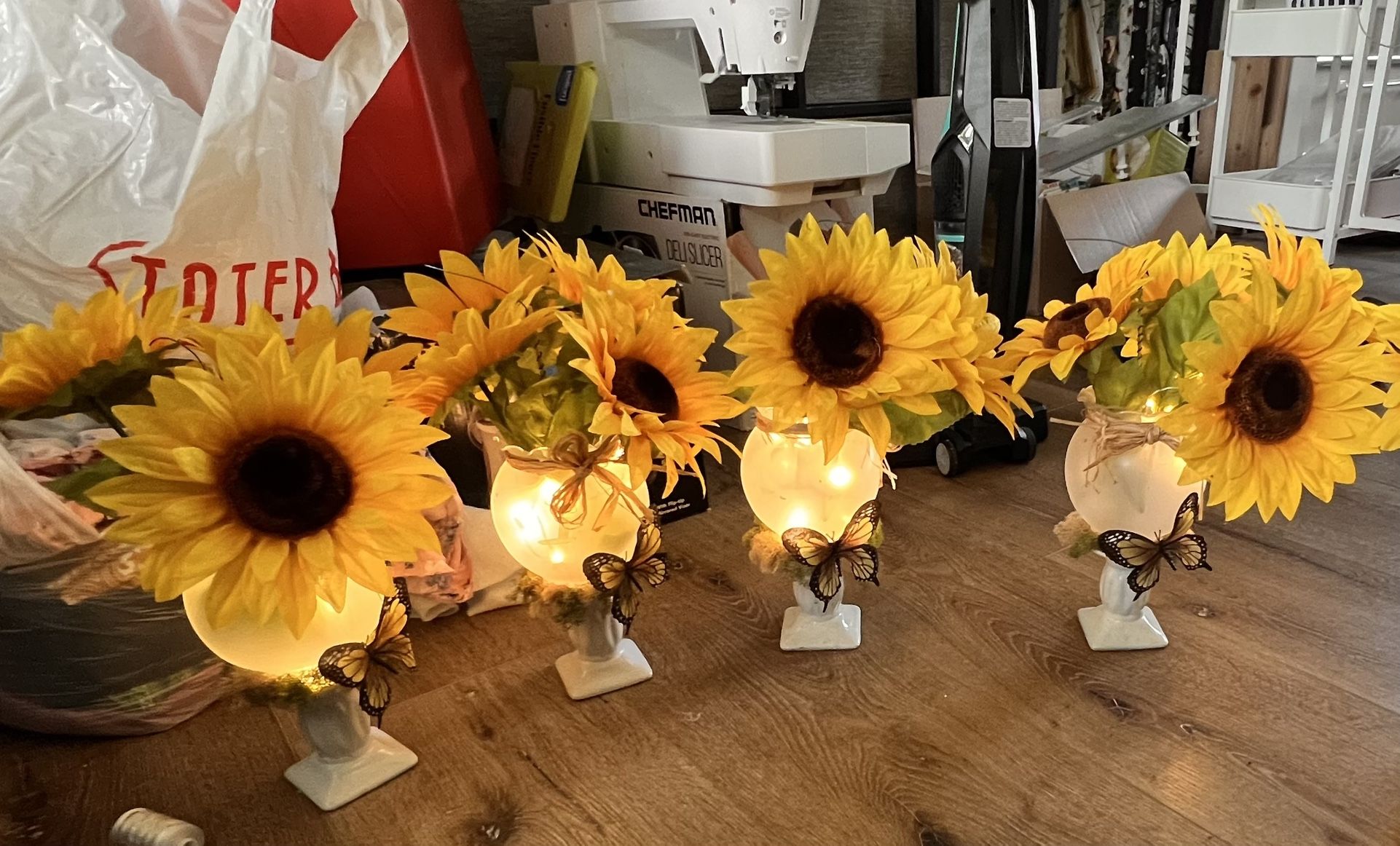 Sunflower butterfly centerpiece with fairy lights It was used to hold picture in the middle.