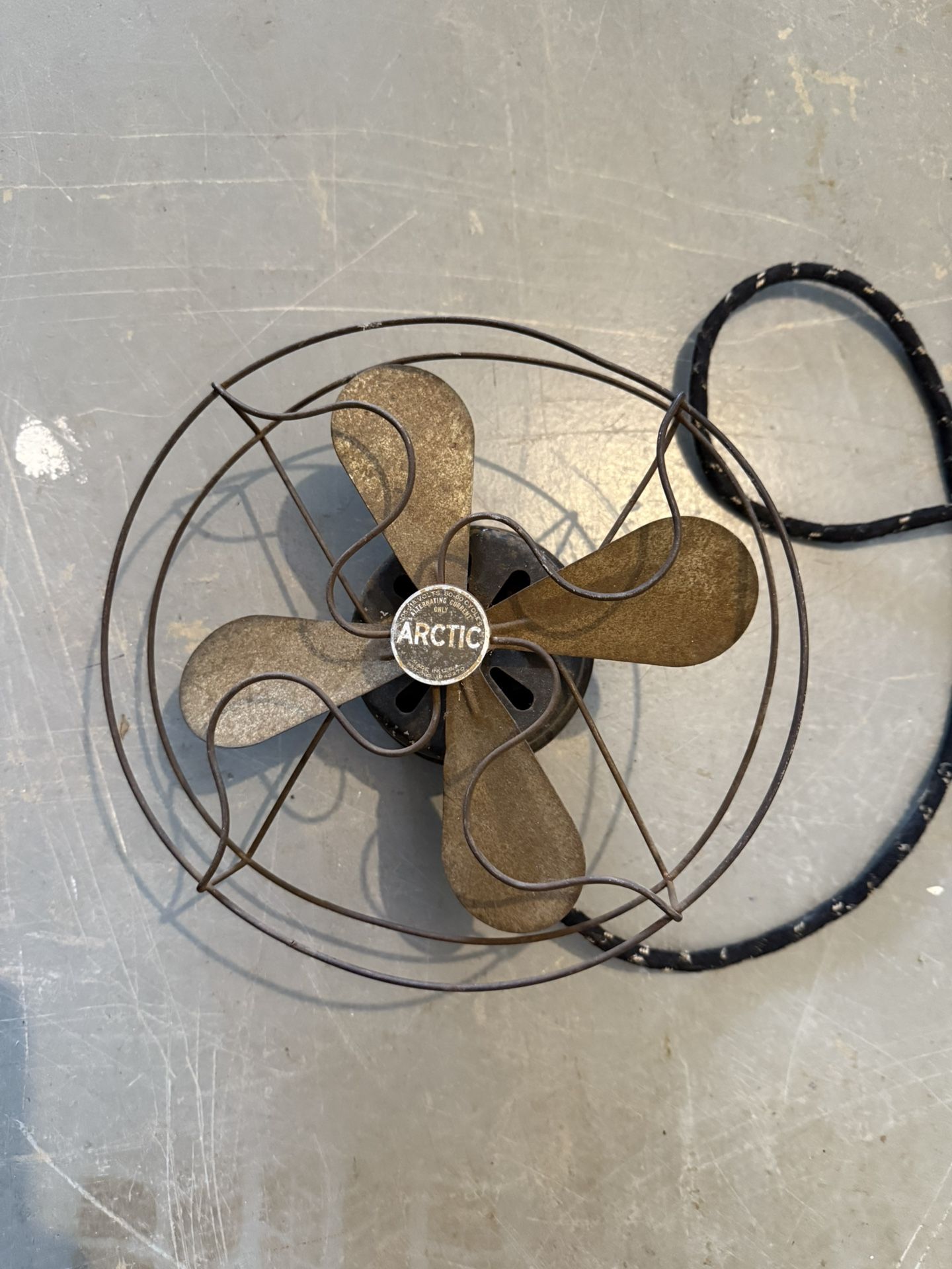 Collectible vintage ARCTIC fan. Made in USA. Pat no. 1943270. Does not work. 9” diameter