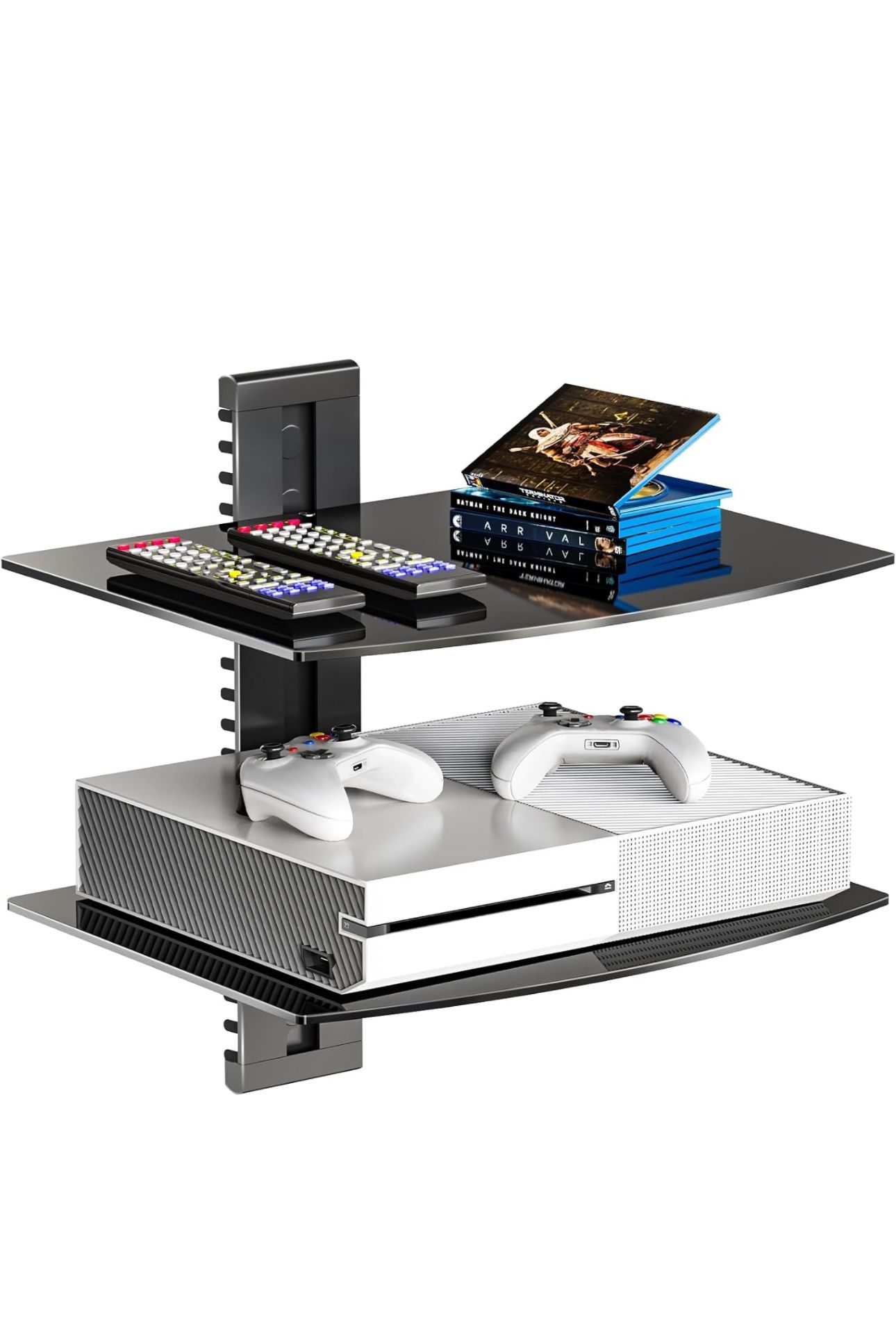 WALI Floating Entertainment Center Shelves, Holds Up to 17.6lbs, TV Shelf with Strengthened Tempered Glasses for DVD Players, Cable Boxes, Games Conso