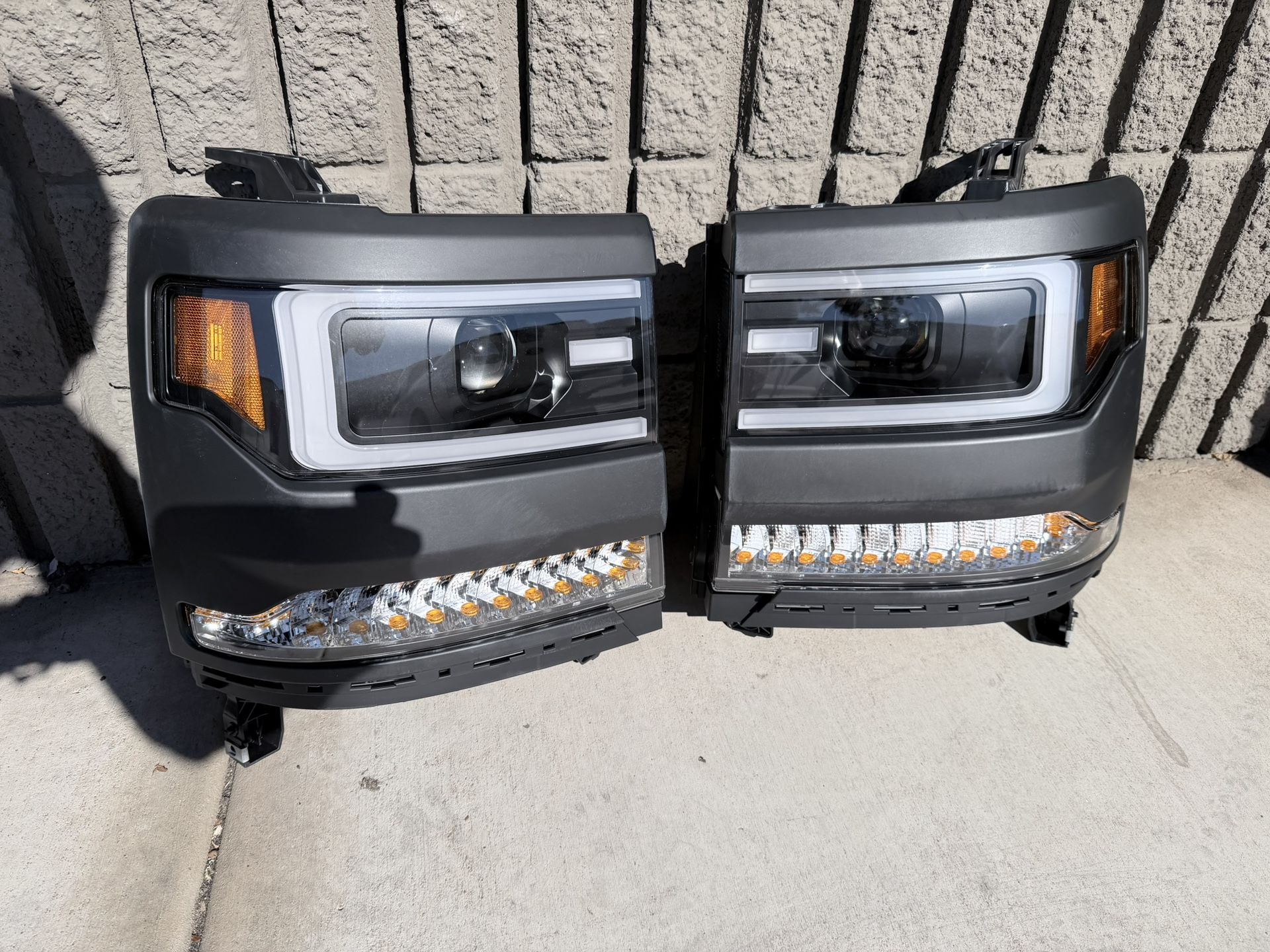 Pick up at 55th Ave and Camelback PRICE IS FIRM THANKS New set of black housing LED DRL projector headlamps for 2016 through 2018 Chevy Silverado 1500s. LED turn signal also. $300 FIRM