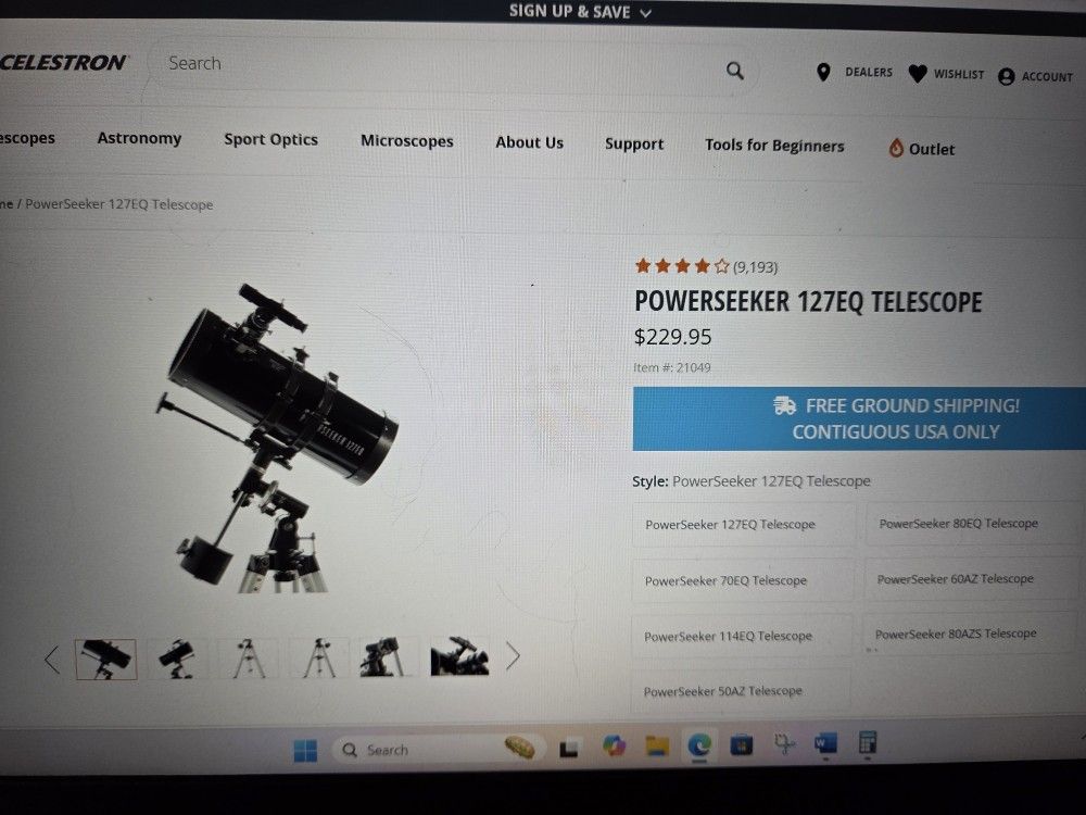 Powerseeker 127EQ Telescope. Put together once. The rest of the time it's been neatly and safely stored in it's tub with foam packed around it. Nothing wrong with it. New is $229.00