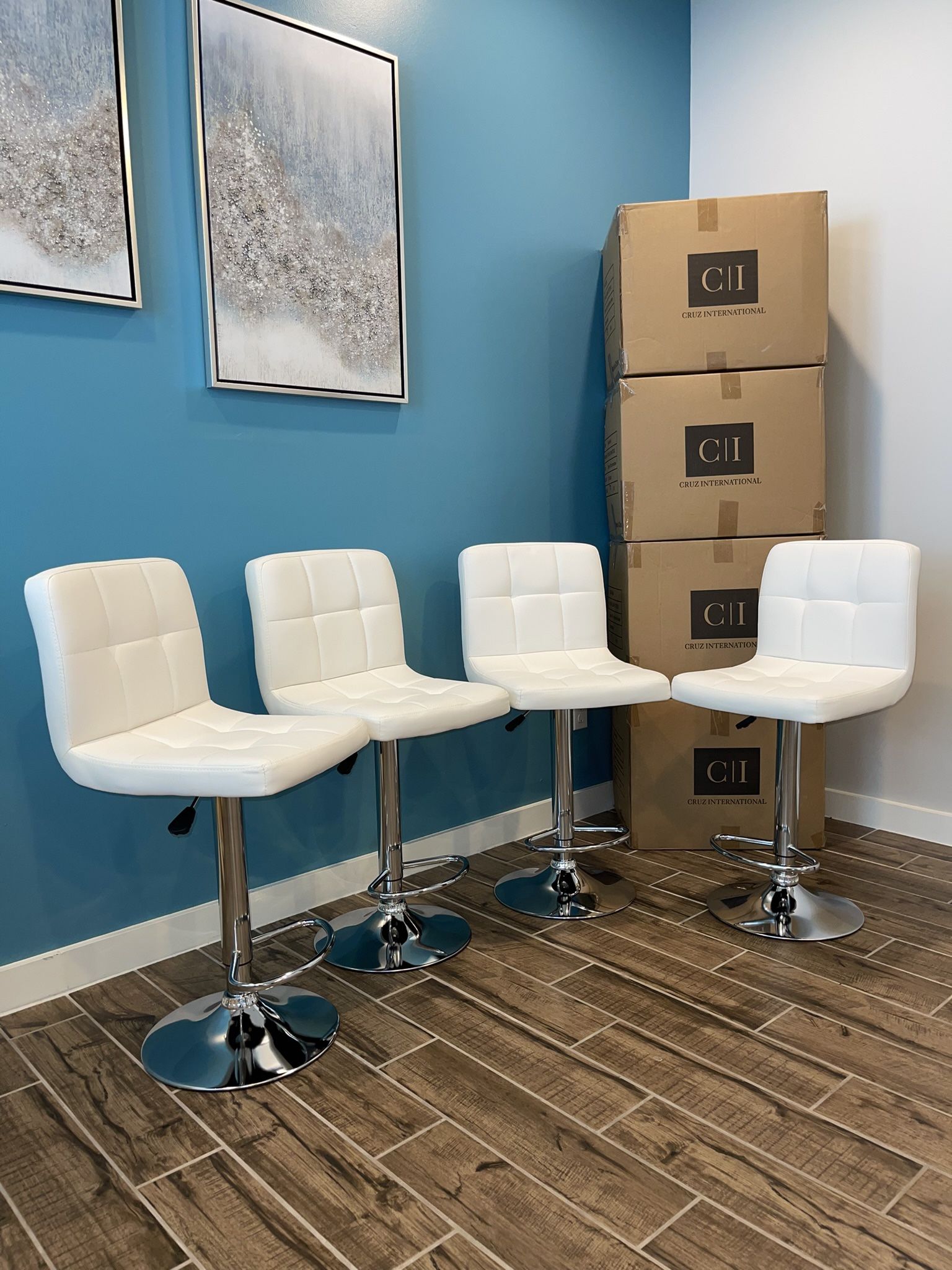 New 4 White Bar Stools