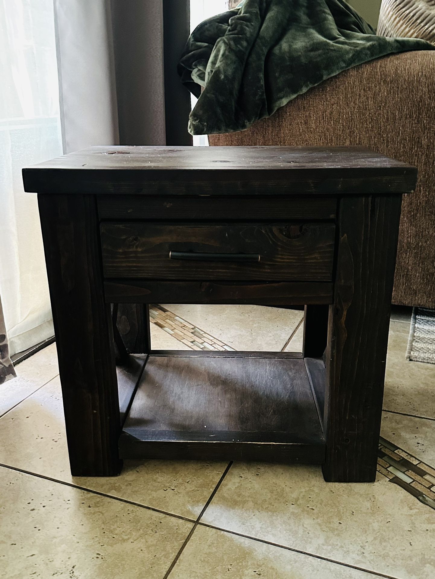 Solid wood end tables matching set 2, with drawer. In great conditions. $200 for both. Pick up in alpine or national city