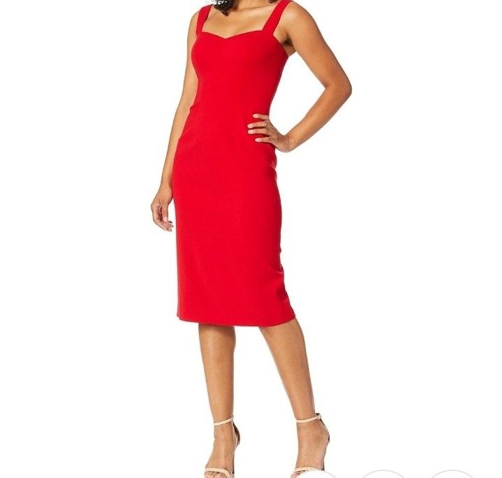 Dress the Population Women's Nicole Sleeveless Bodycon Stretch Midi Sheath Dress (Medium, Rouge)