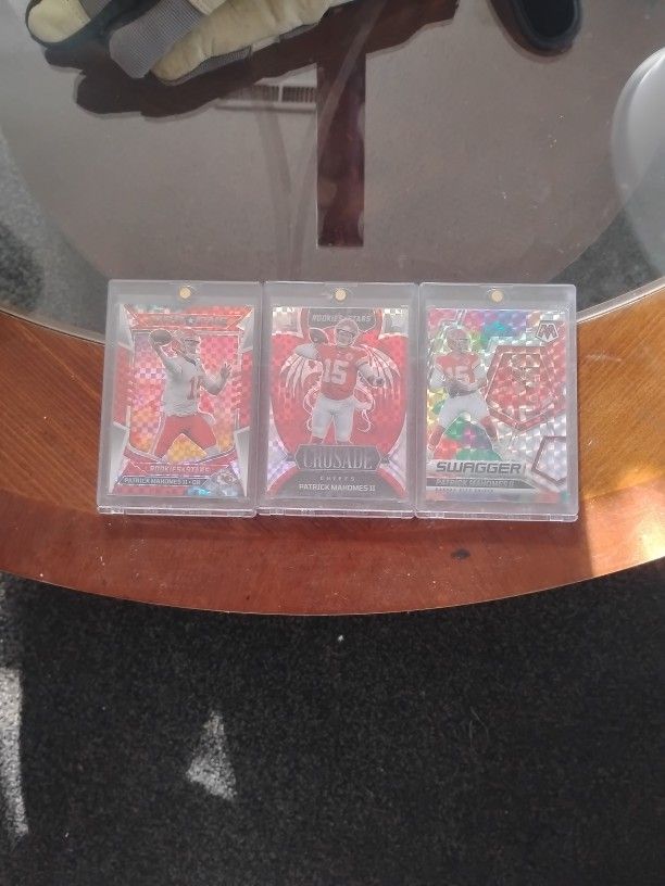 I have 3 Patrick Mahomes NFL trading cards. These are in excellent or mint condition. These cards are rare and getting harder to find. If graded each would grade 9 or 10.