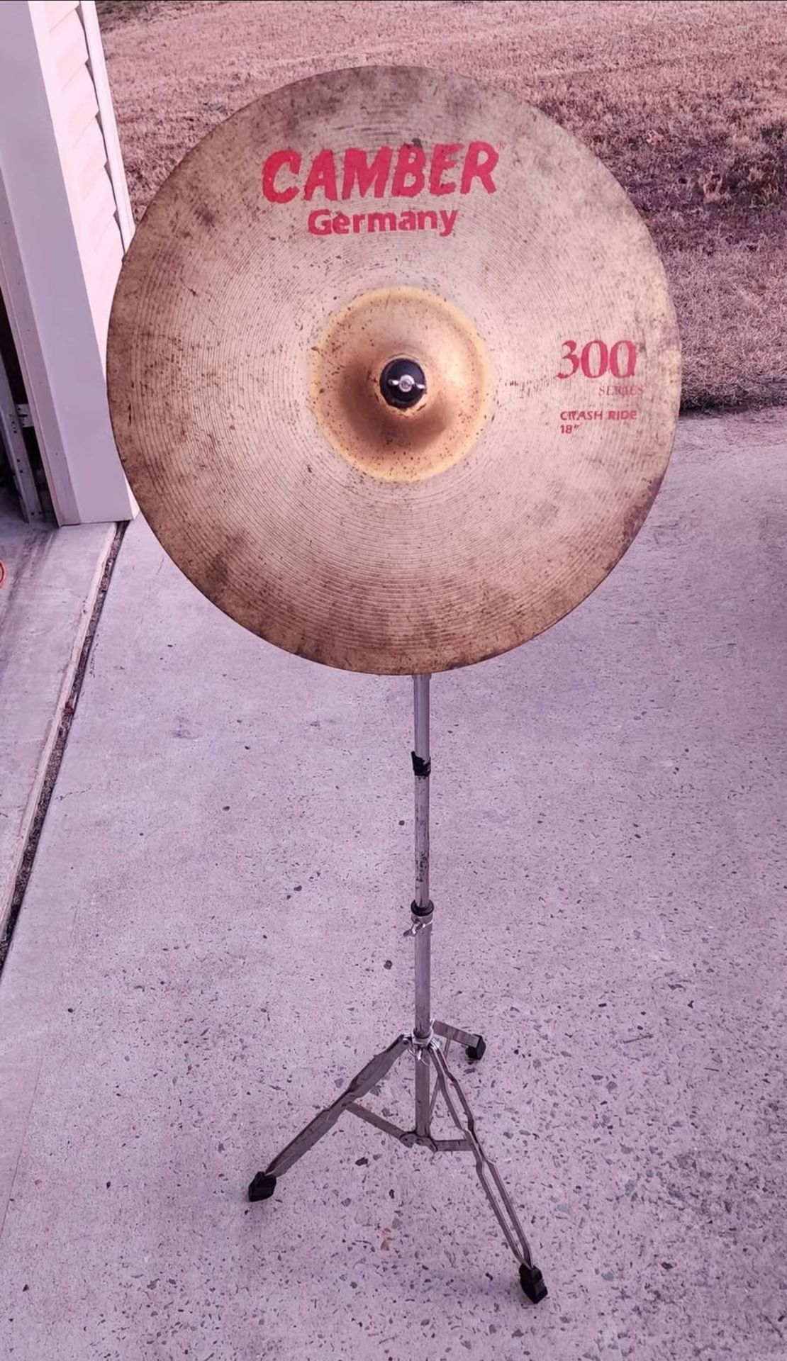 18" Crash Ride Cymbals, Set of 2 Camber Germany 300 Series w/Stand USED 14" Crash Cymbal, Set of 2 Camber Germany 300 Series w/Stand & Pedal. These cymbals look used, but show no signs of cracking. They appear to be in good condition. Perfect for practicing. SOLD-AS-IS