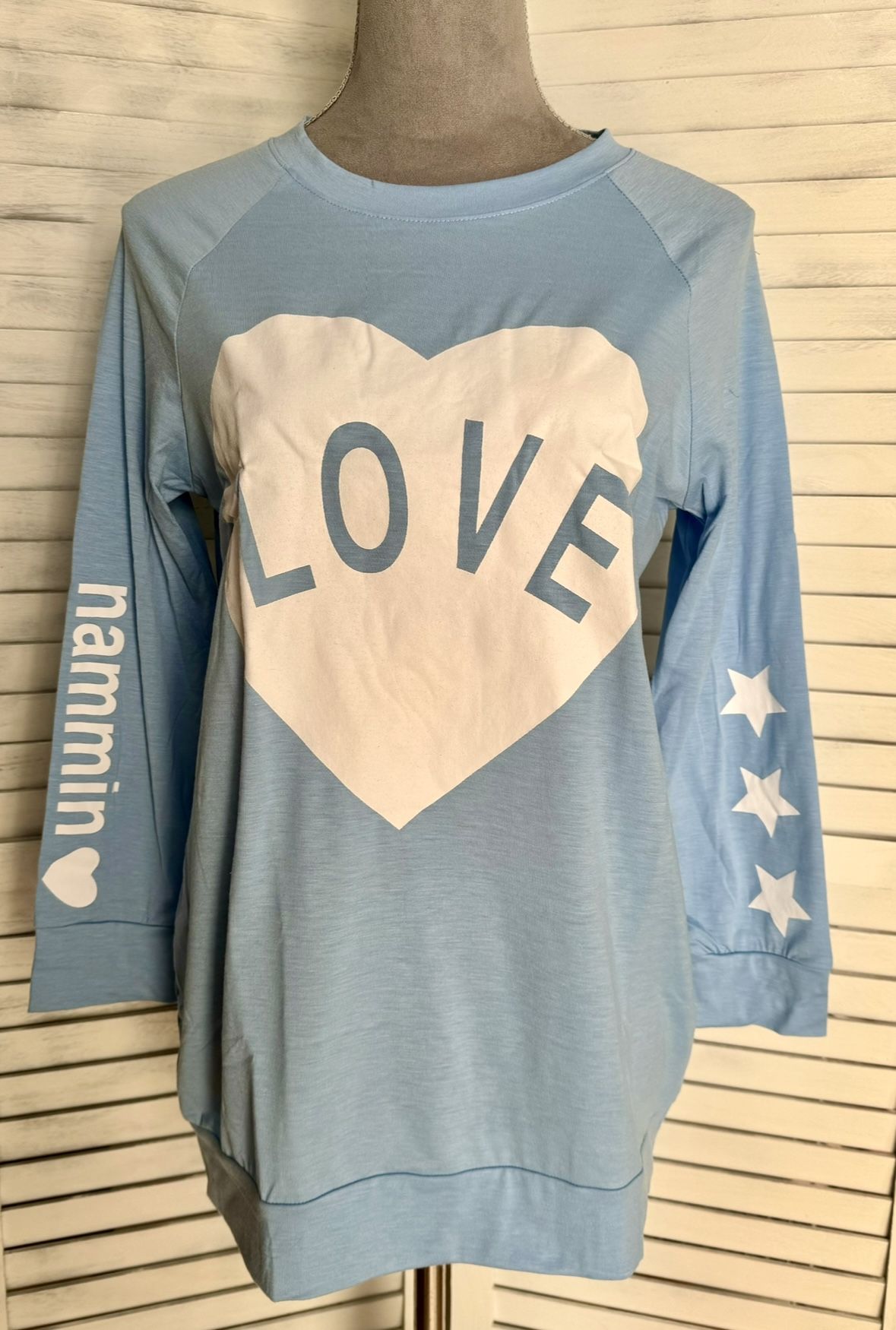 Women’s Long Sleeve Shirt, Light Blue. Size Large. Measurements: Chest 39”, Length 28”. Polyester. NWT. #longsleeveshirt #loveshirt #womenstop #womensshirt
