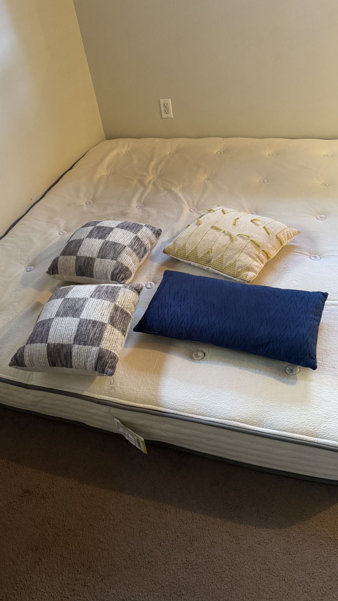 2 square checkered, 1 square with fringe and 1 blue rectangle. The squares are 100% cotton on the outside; the blue pillow feels like a blend. Price firm, pickup in Tempe near Broadway and Mill Avenue