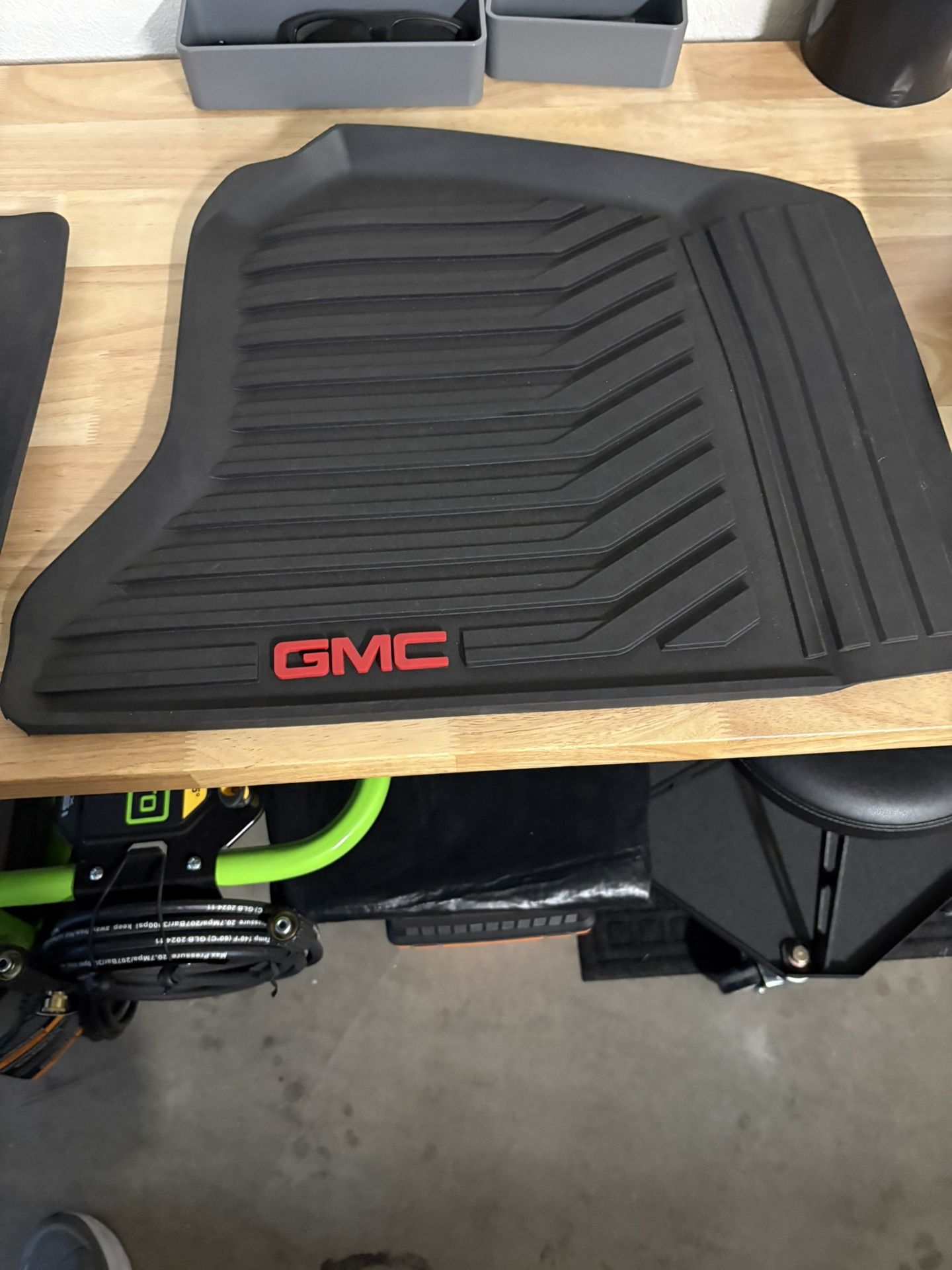 Front- driver and passenger mats. Rubber all weather gmc OEM. Never used. Thank you