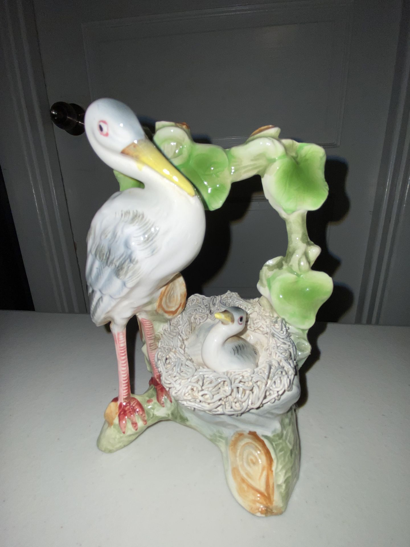 Tilso Stork And Baby Figure Spaghetti Porcelain Baby Room Decor Hand Painted MCM