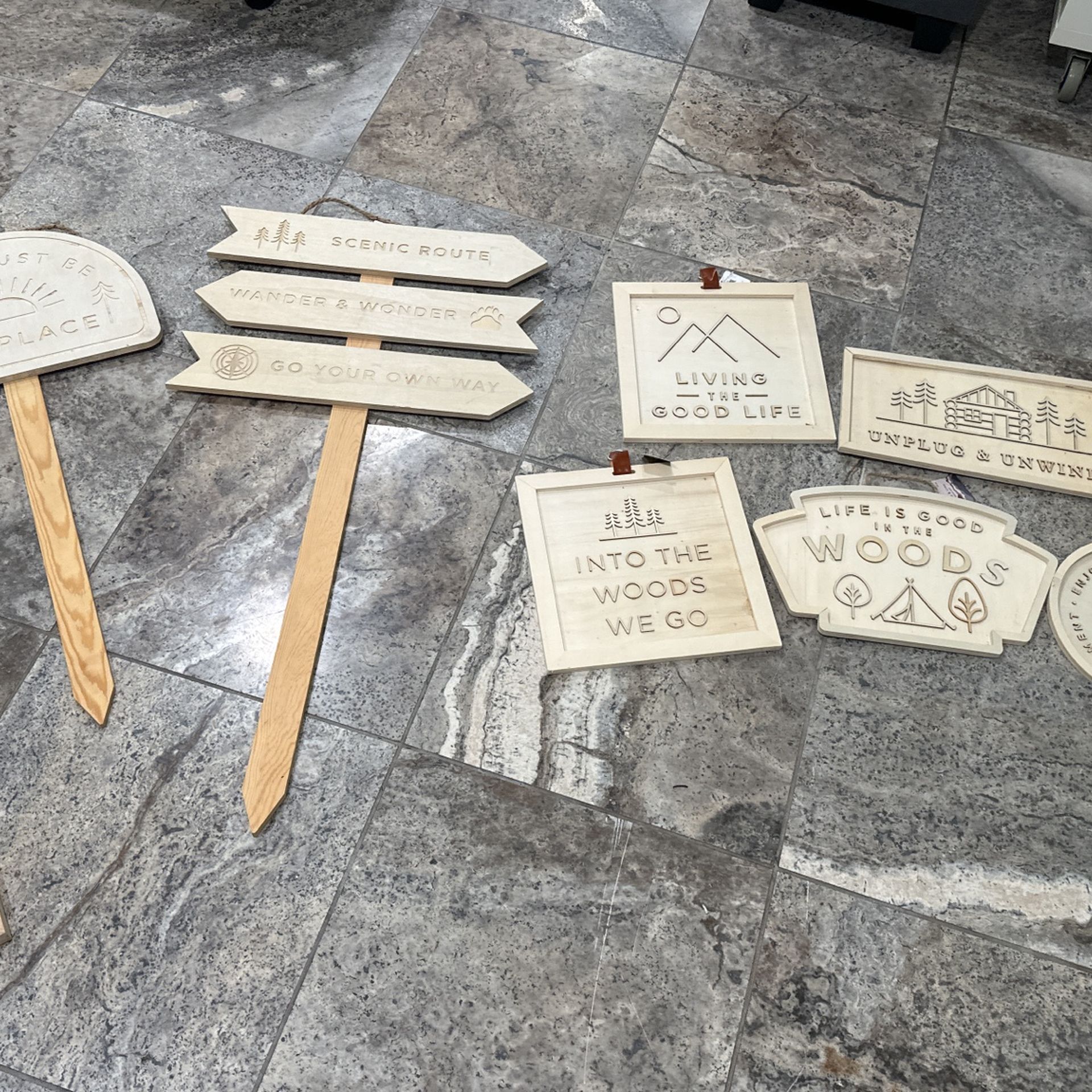 All new with tags. Each one ranges from $15-29.99 originally. Can be painted or stained, raw wood. All Nature themed yard signs. Good for your yard, home decor, party decor or even a wedding! Welcome sign is 48” tall