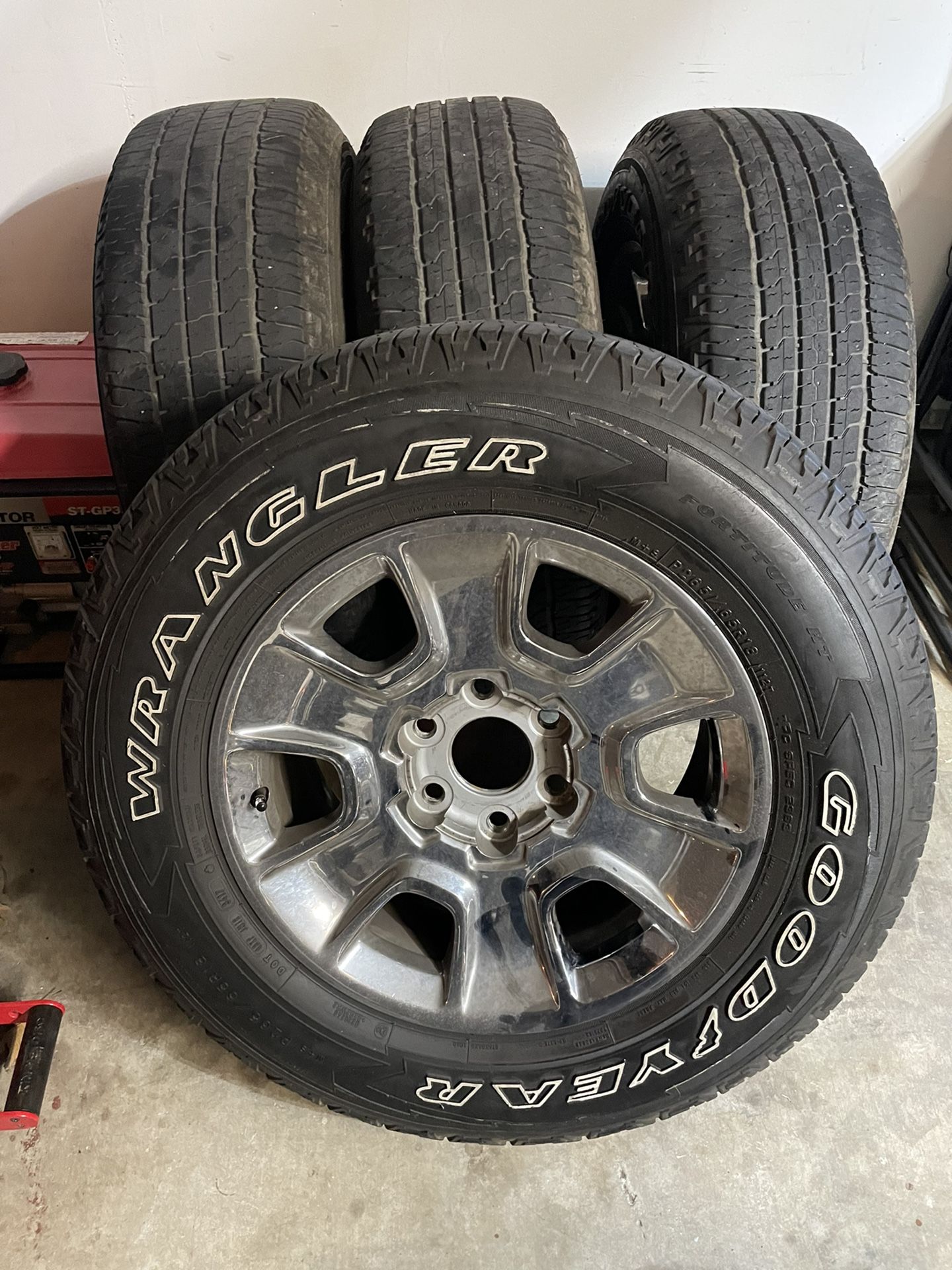 Very good condition all in great shape. Came off a 01 GMC Sierra. Have all caps. Lots of life left on tires. 265/65/18