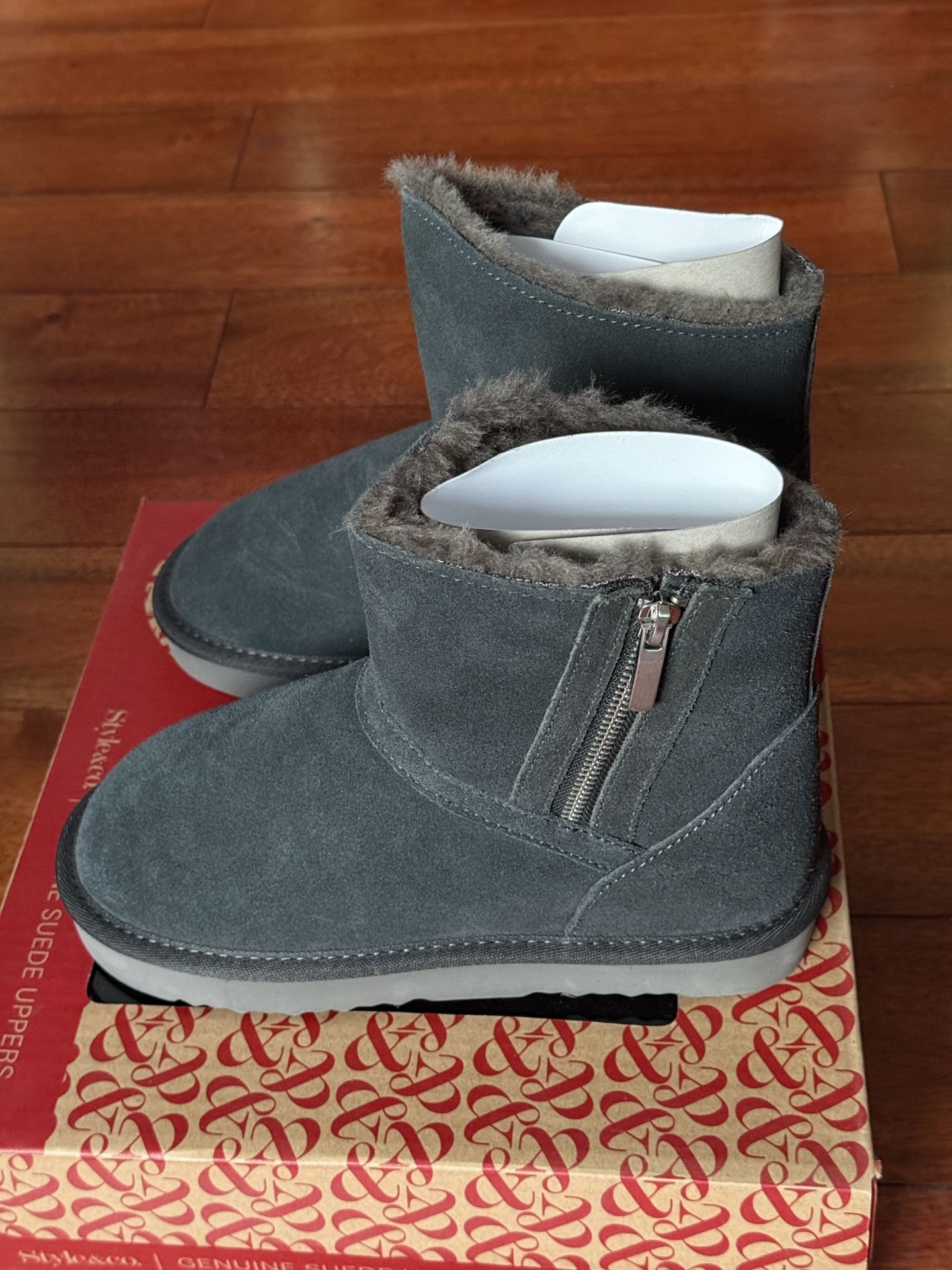 Women’s brand new suede Style & Co, grey color boots. Size 6M. Style Ciley