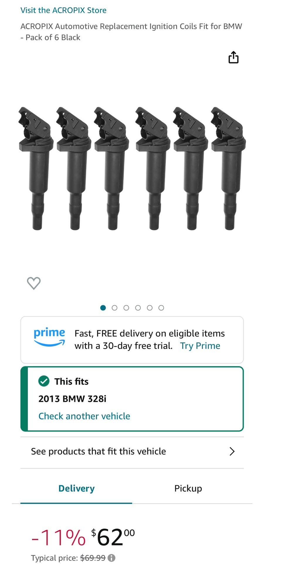 ACROPIX Automotive Ignition Coil Pack Spark Plugs Coil Fit For BMW - Pack Of 6 Black BMW 3 series Fit multi BMW models