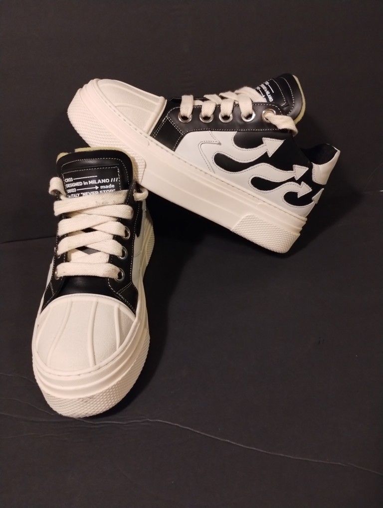 Christian Zerotre CR03 Flame Shoes Black White Leather Mens Size EU 43 US 9.5. Pre-owned in Very good condiion