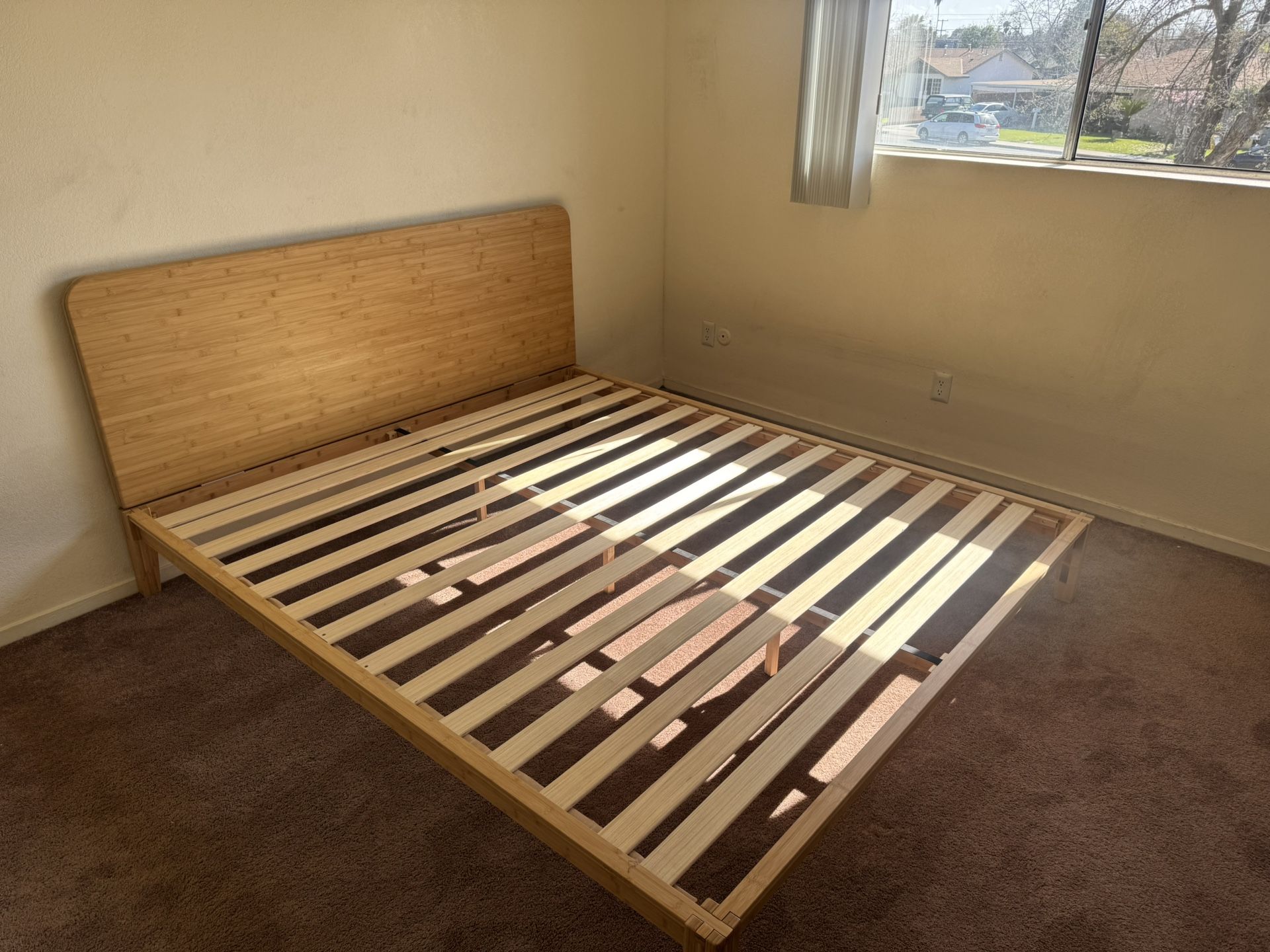 California King Bamboo Bed Frame w/ HEADBOARD. No tools required “easy” assembly and disassembly.