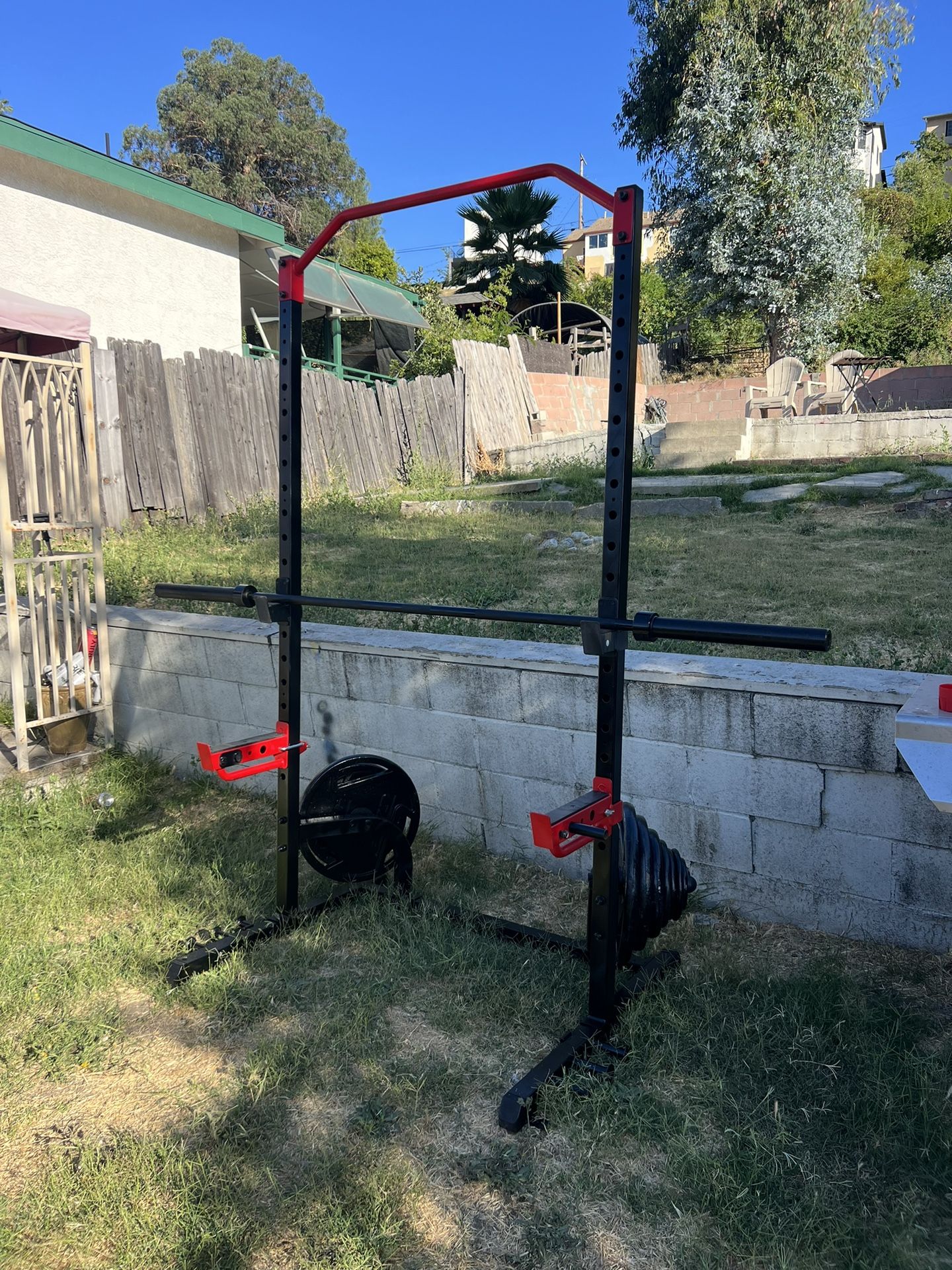 Olympic Squat Rack Olympic Barbell 300 lbs in Weights Rack was part of a personal gym used, in great condition. Delivery not available, pick up only.