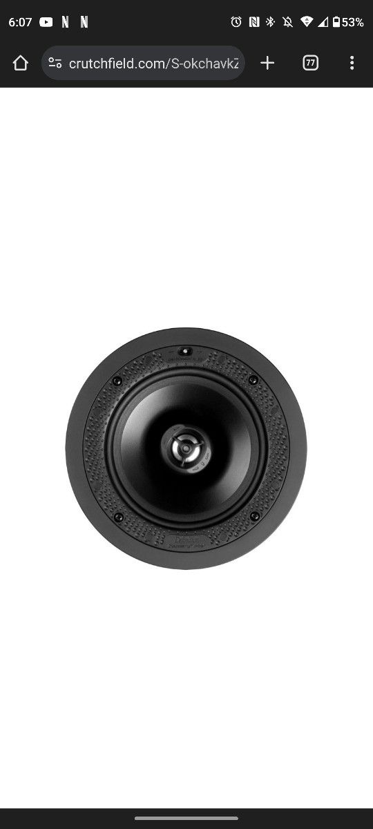 Product highlights: frequency response 26-30,000 Hz (±3dB) 1" pivoting Pure Aluminum dome tweeter 6-1/2" woofer Disappearing™ In-ceiling speaker design, including hidden flange and low-profile grille handles up to 200 watts sensitivity 90 dB impedance: 4-8 ohms paintable white matte grille cutout dimensions: 7-1/4" diameter mounting depth: 3-1/16" I have six of these and will work great for Atmos/overhead effects. They are used but are in good condition. These sell for $300 each new but these are used so price reflects that.