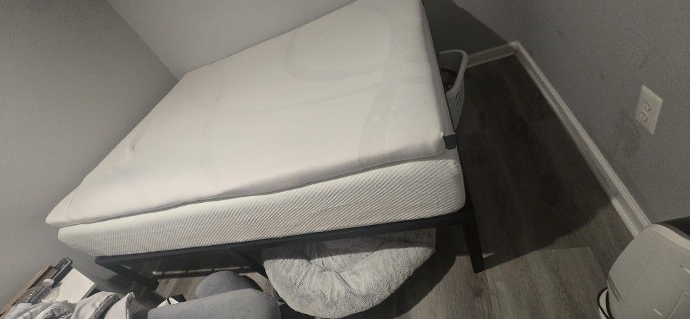 Queen Bed Metal Frame, Mattress And Comfy Mattress Topper
