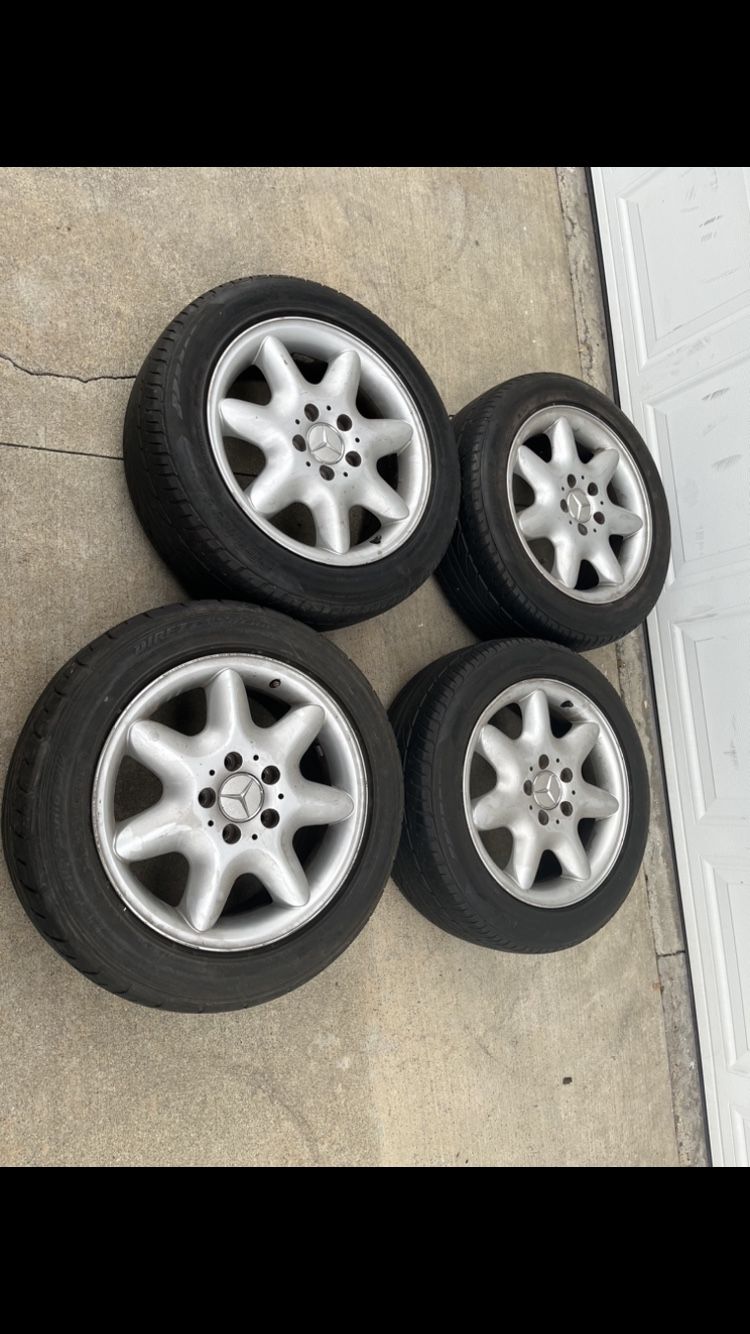 4 — 205/55r16 5x112 5x4.41 Stock Mercedes C300 C280 Wheels Rims Good 80% Treads Tires !