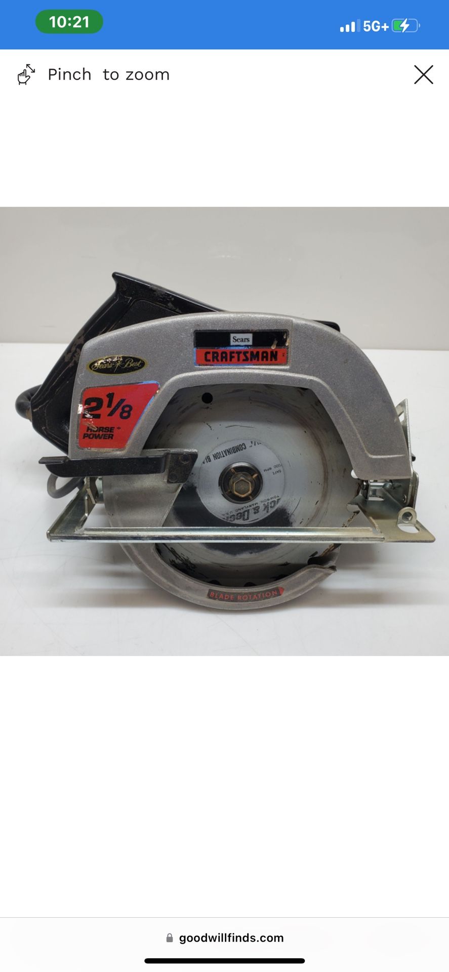 Vintage Sears Craftsman 2-1/8HP 10A 7-1/2” Circular Saw Works Great