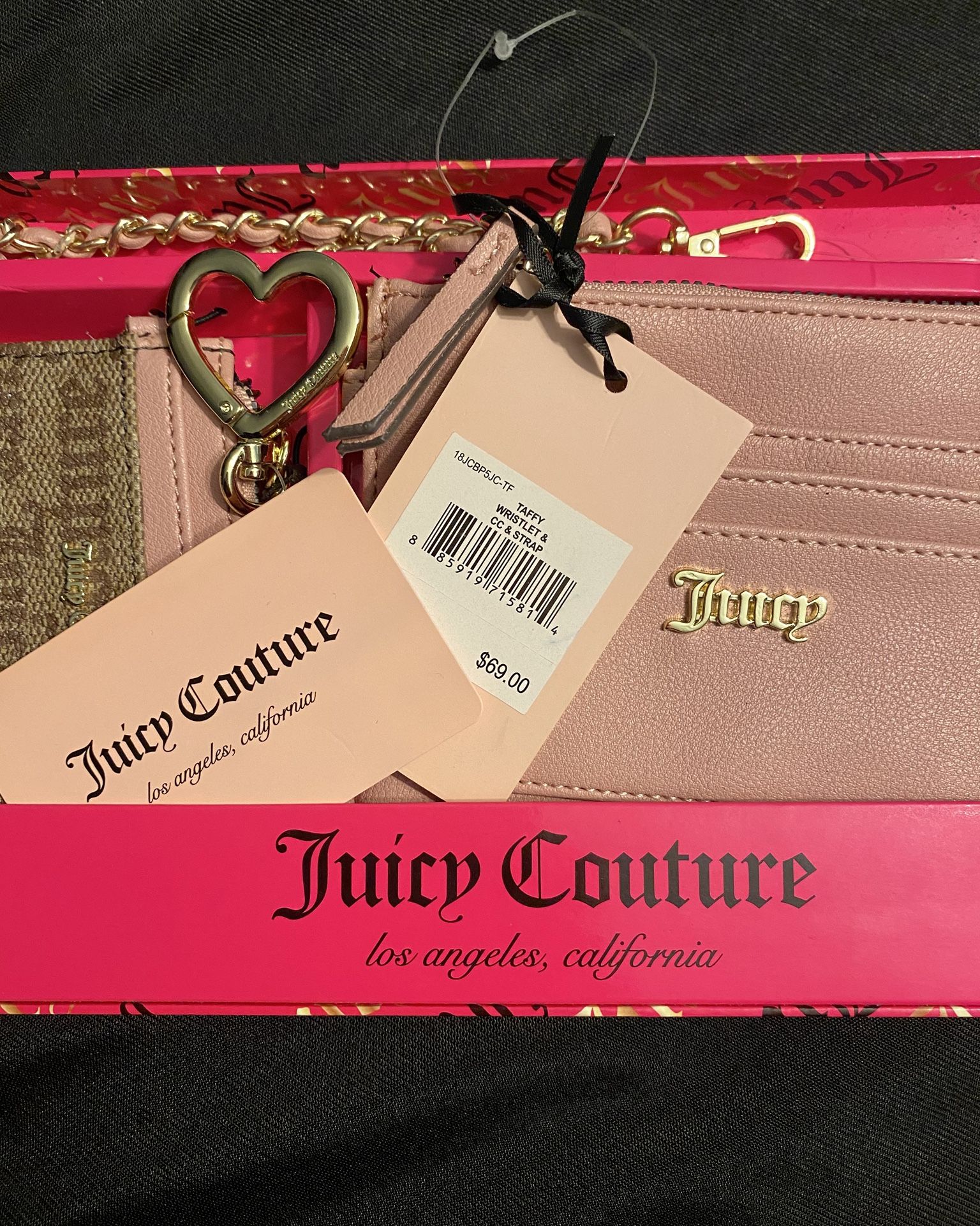 New with Tags - Juicy Couture wallet set. Wristlet with chain strap and small wallet/credit card holder. Comes in Juicy gift box. Ready to be gifted! $10 (cash only). Pick up in Costa Mesa.