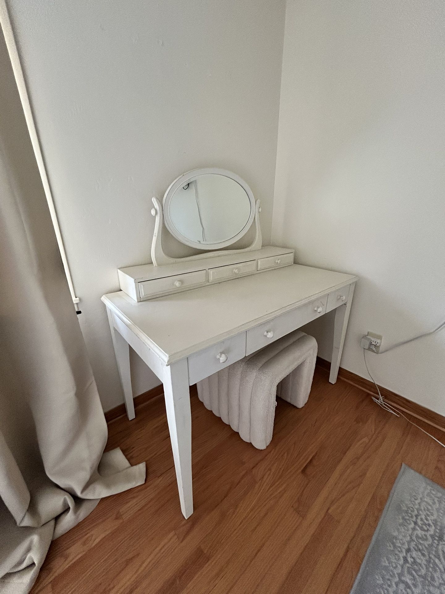 Solid wood antique vanity desk Comes with mirror 6 drawers White Located in San Diego $100