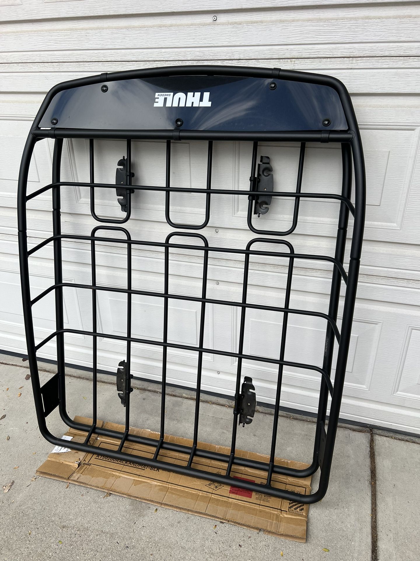 Thule Canyon XT Roof Basket used in excellent condition. No chips, dings, or damage. This carrier is a durable, low-profile cargo basket designed to expand your vehicle’s hauling capacity without taking up interior space. Its tapered side walls make loading simple, while the included wind fairing helps reduce noise and drag during travel. The rugged steel construction provides reliable support for road trips, camping, or everyday utility. Measures 50.25" × 41" × 6" overall with an internal cargo area of 41" × 39" × 5". It carries up to 150 lbs and weighs about 29 lbs. Mounting is straightforward, fitting most factory and aftermarket crossbars with spreads between 20" and 37". All hardware is included, and it comes with the 4-pack add-on Thule One-Key locking system. Retails new for $399-$499 + $60-$75 for the 4-pack locking system. Don't pass up this deal. Pick up in Sandy near High Point Park.