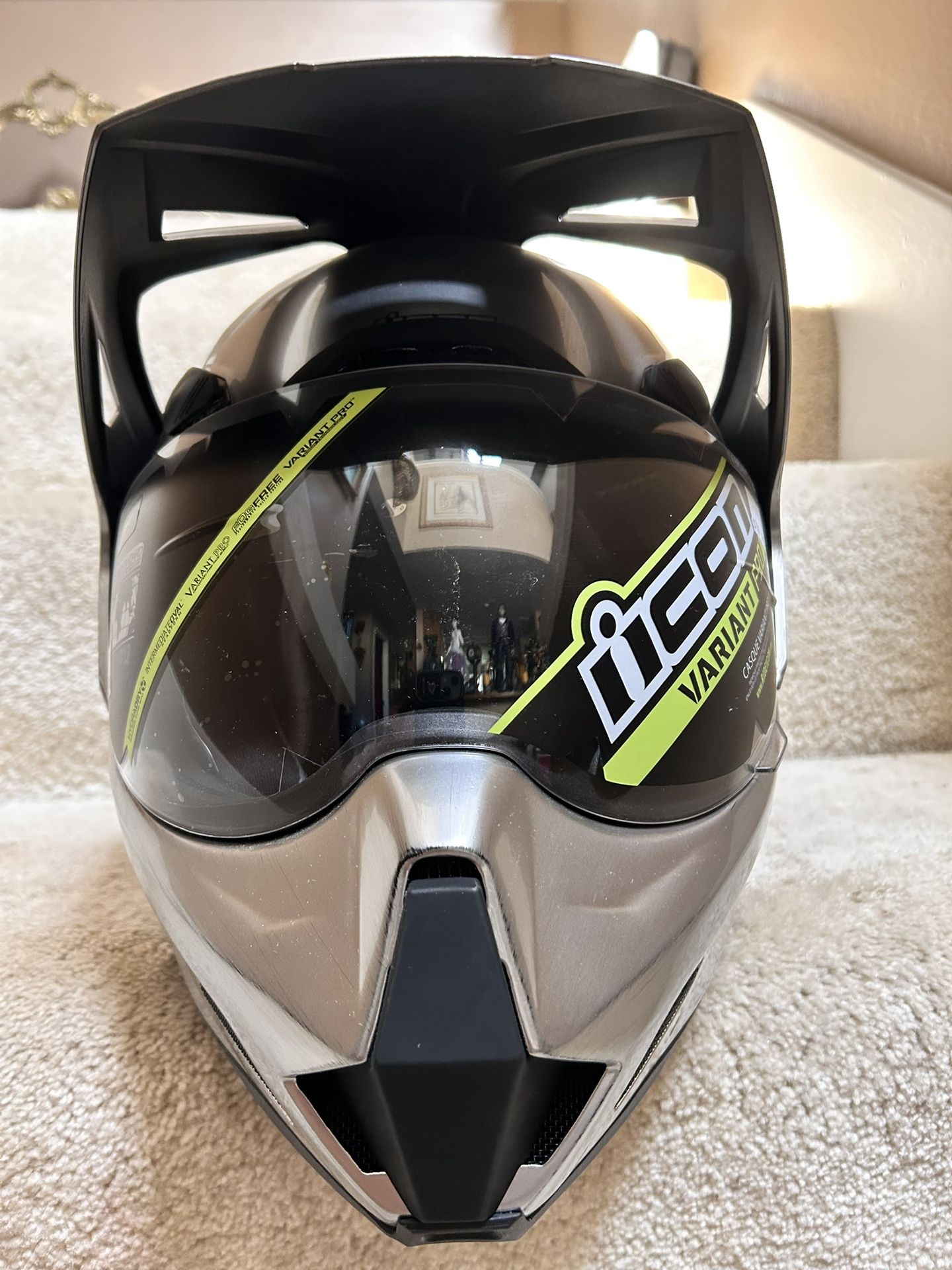Icon variant pro helmet Gloss silver design Never used DOT certified ECE Quicksilver Tags: Motorcycle bike suzuki honda yamaha kawasaki Japanese American harley buell cruiser sportbike rr bmw ducati aprilia gsxr cbr r6 r1 zx evo crf kx yz 250 450 125 rm atv quad