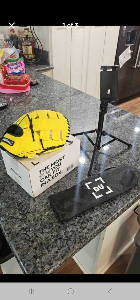 Dribble Up Baseball training Glove with stand for iPad, Tablet or mobile phone. Comes with bag for the stand. Used only once. My son didn't like it. $40obo.