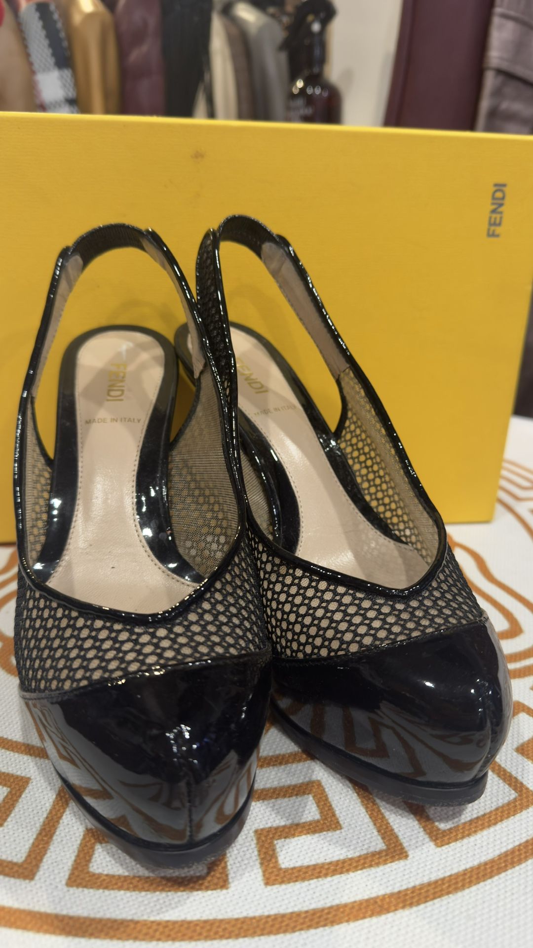 Fendi Black Platform Slingback Patent Leather and Mesh High Heel