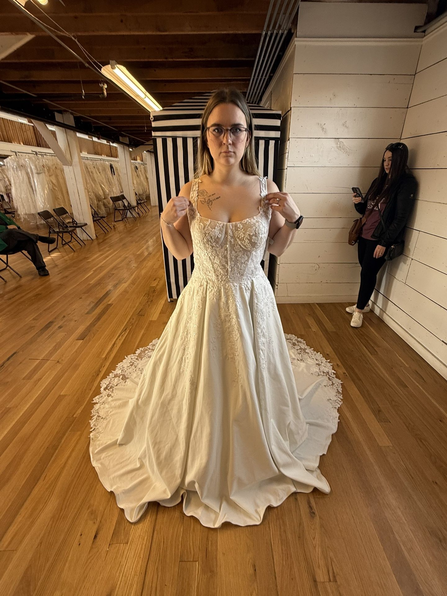 This wedding dress was bought on consignment, it was only worn once and is in great condition. I found one that I love more and just don’t need it.