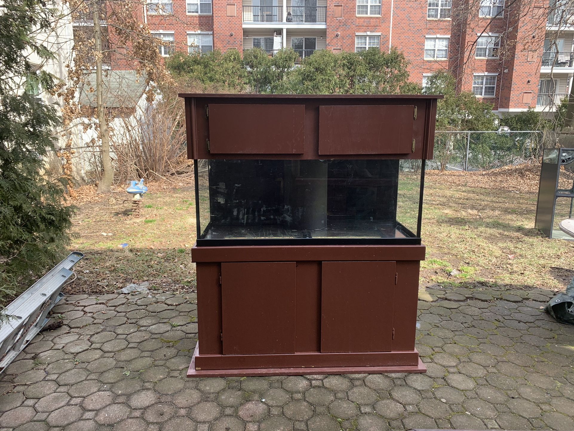 This was my moms tank. She had it for years and It was a fish only with live rock. She recently passed away. So I transferred the live stock to my tank and I’m selling this tank Measurements: Tank = 48L x 18W x 21H Stand = 53L x 23.5W x 28.75H Hood = 53L x 22W x 12.75H All together = 53L x 23.75W x 60H I also have live rock and a large Puffer available
