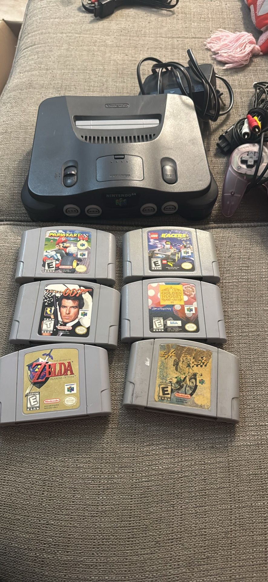 Nintendo 64 viene con todos los cables 1 Control, todo original y 6 juegos Mario Kart, 64 LEGO, Racers Golden eye 007 Golden Nugget Exit bike 64 Zelda Ocarina of Time Todos los juegos son originales