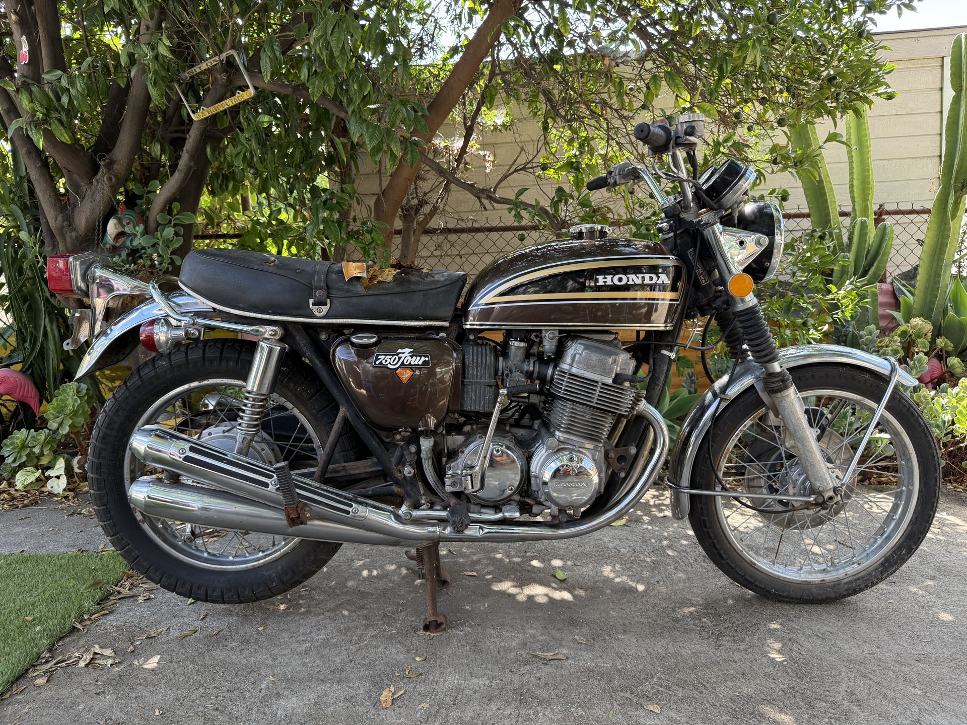 1973 Honda cb750 running project. Matching numbers. Original key. Original paint in great shape. Rust free gas tank. Good running motor. Rebuilt carburetors. Trans shifts good. Original hm341 exhaust pipes. Unmodified frame. Clean title in hand. Thanks.