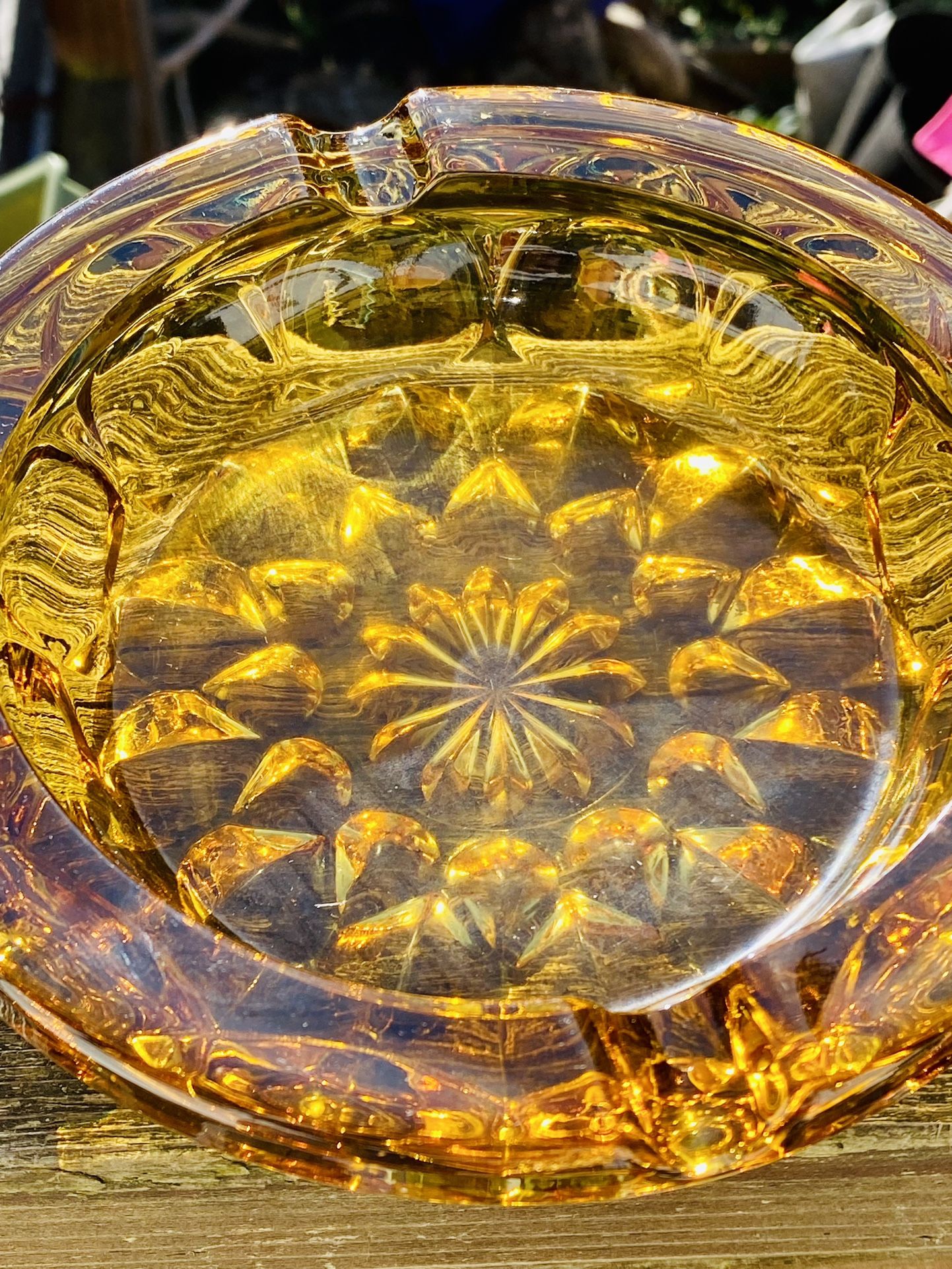 Intricate Vintage Amber Glass Ashtray Gorgeous!