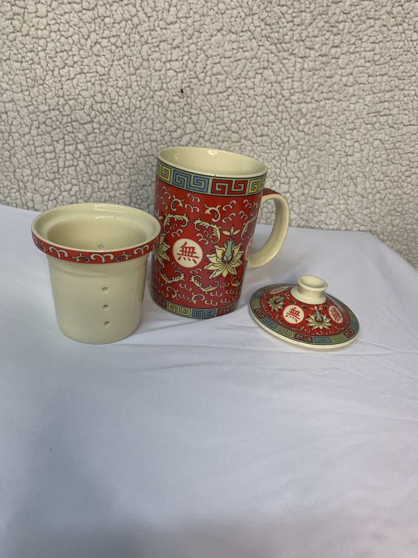 World Market 3 Piece Tea Mug & Infuser w/ Lid - Red Boho Cup