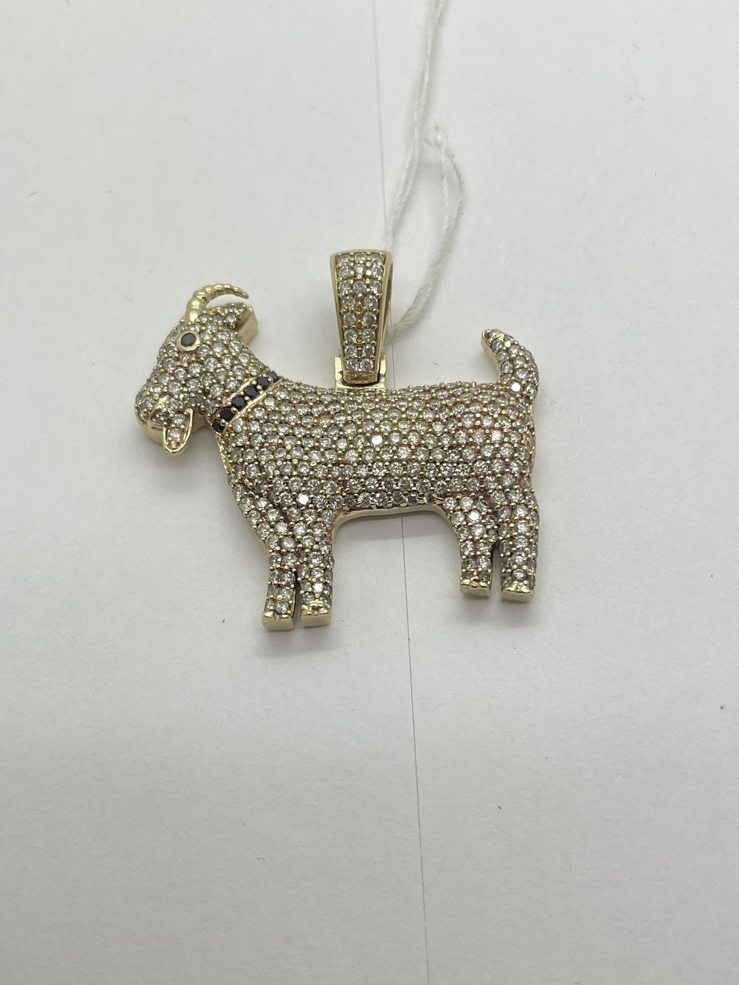 GOAT PENDANT 10KT YG, 19.4 GRAMS, NATURAL DIAMONDS. If you have any questions please feel free to ask. Inquire how you could possibly take this home today for little to $1 DOLLAR DOWN and pay off NO INTEREST from 30 to 180 days. The best part! It doesn’t affect your credit to see if you qualify. Same as we have LAYAWAY with only 10% percent of your purchase.